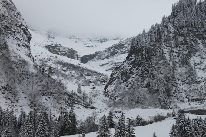 zur zeit schon recht schönes eis an den fällen. wir sind den mittleren geklettert. eine italienische dreierseilschaft hat den linken und rechten geklettern. die steilen, kurzen fälle rechts oben sahen noch nicht gut aus.