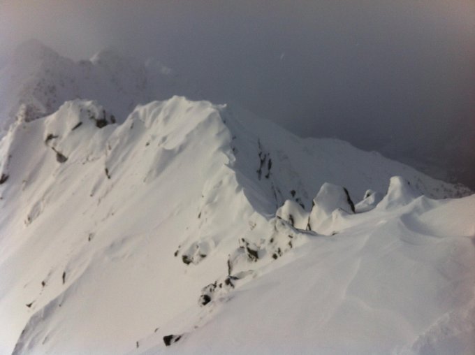 Mit 4.5h keine Bestzeit aufgestellt. Aber das Spuren war sehr anstrengend, und das hüfttiefe Gewühle im Couloir erst recht...