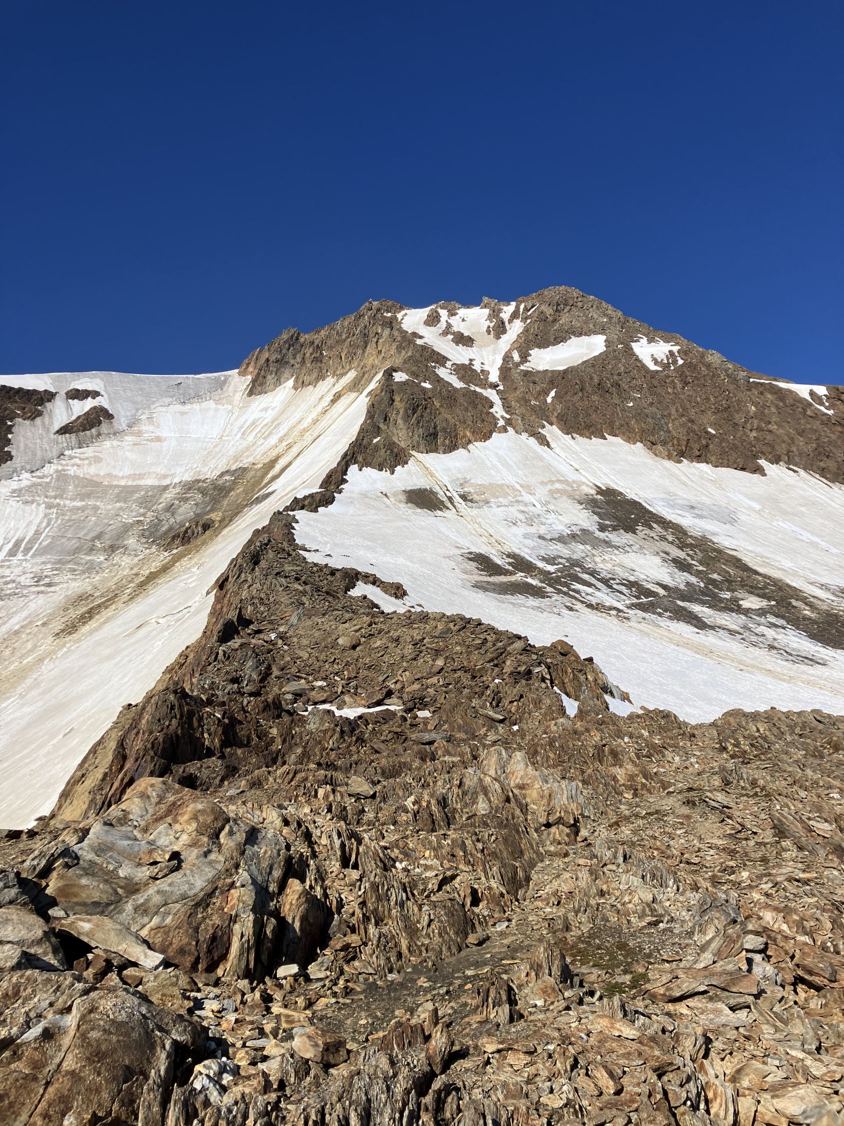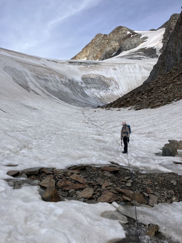Die Routenbeschreibung ist nicht korrekt. Es existieren keine Bohrhaken und es wäre auch nicht möglich dort welche zu setzen. Der Berg löst sich angesichts des tauenden Permafrostes auf. Mischung aus Schlamm und kühlschrankgrossen Blöcken in Bewegung. Wir sind vom Brandenburger Haus gegangen. Neuer Klettersteig im Abstieg zum Langentauferer Ferner. Diesen hoch ins Weisskugeljoch und von dort dem Grat folgend (eigentliche Kletterpassagen kurz aber nicht abzusichern und absolut miserable Felsqualität, von den Schwierigkeiten nicht >II aber eben alles lose...). Über Normalweg ins Hintereisjoch und via Hintereisferner ins Rofental. Der Gletscherschluss durch das Abtauen ebenfalls heikel. Gigangtische Murenabgänge verschütten den Weg und sind noch nicht gesetzt. Bei Regen sicher lebensgefährlich. Gestern machbar.