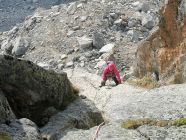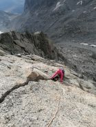 Prächtige Gratkletterei in den Urner-Alpen in der nähe vom Furkapass. Dieser Grat befindet sich unter der Galenstock Südwand, umgeben vom Tiefengletscher. Der Kletterer wird ein gutes Gefühl haben, diesen wunderbaren Granit anzufassen. Er ist ausgezeichnet abgesichert, und es können zusätzlich noch Schlingen und Camalots gelegt werden. Die Urner-Alpen sind ein Kletterparadies.
