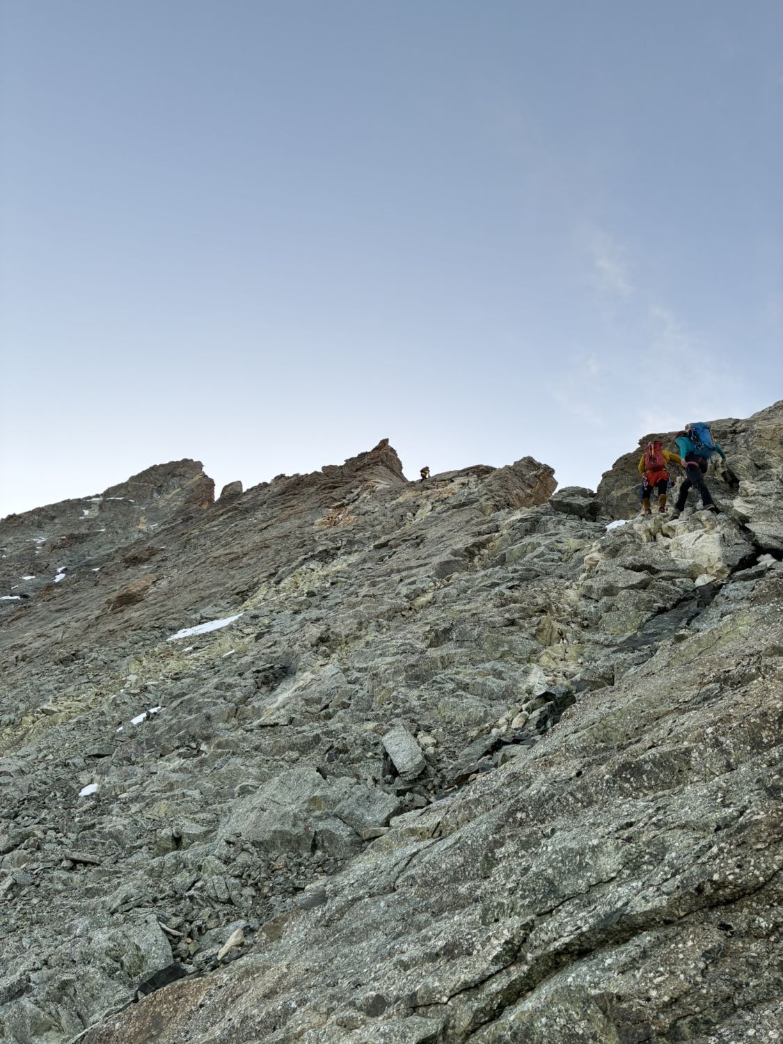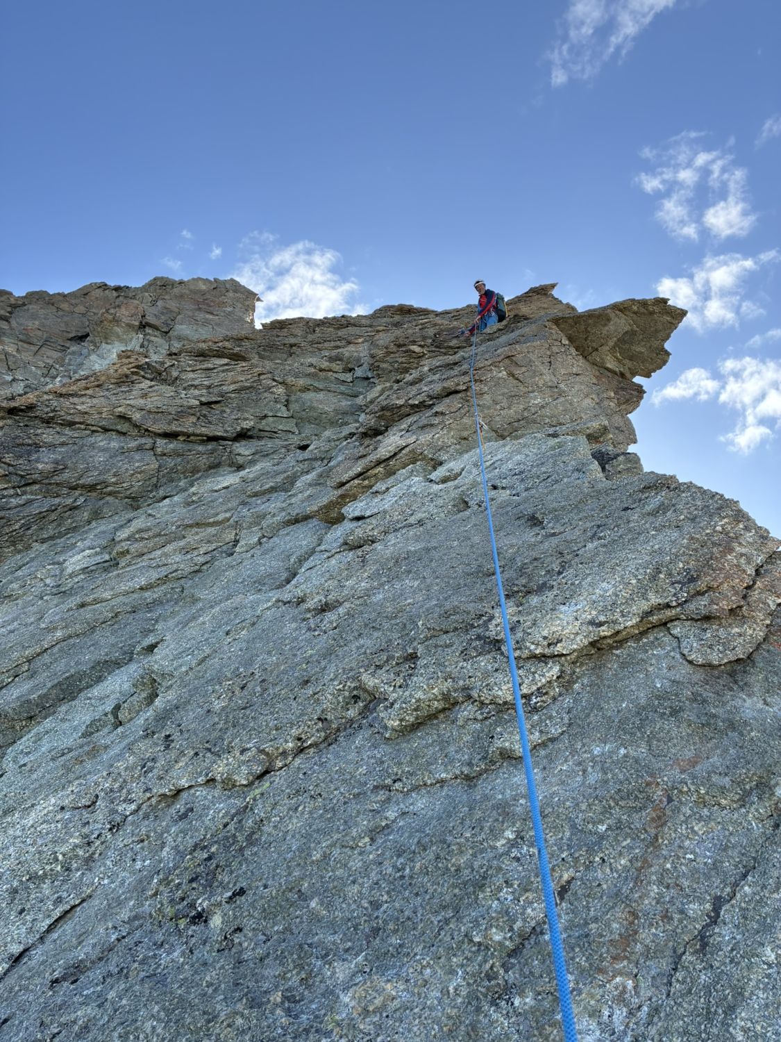 Der Fels ist im Auf- wie Abstieg trocken und der Einstieg auf den Arbengrat ist gut zu finden.