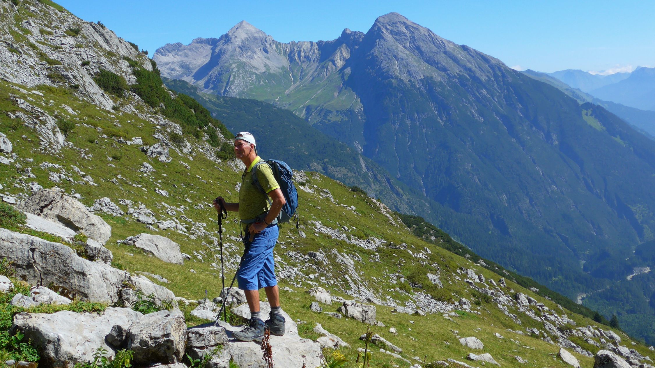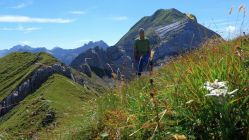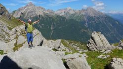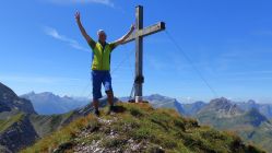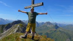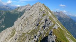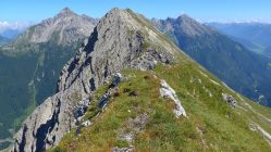 Nach einiger Zeit erreichen wir eine Abzweigung. Geradeaus ginge es über den Wöster Sattel nach Lech. Wir gehen rechts und queren ins Höll Kar hinein. Steil erreichen wir die Scharte im Südwestgrat. Nun geht es über den Grat, bisweilen recht luftig und über die Kante balancierend zum Gipfel der Höllenspitze. Eine grossartige Tour für Abenteurer und Einsamkeitsfreaks. Das Gipfelbuch ist weit über 30 Jahre alt und ausser pfeifenden Murmeltieren haben wir niemanden gesehen. Die Einkehr in der Bockbacher Almwirtschaft ist abschliessend natürlich Pflicht :-)