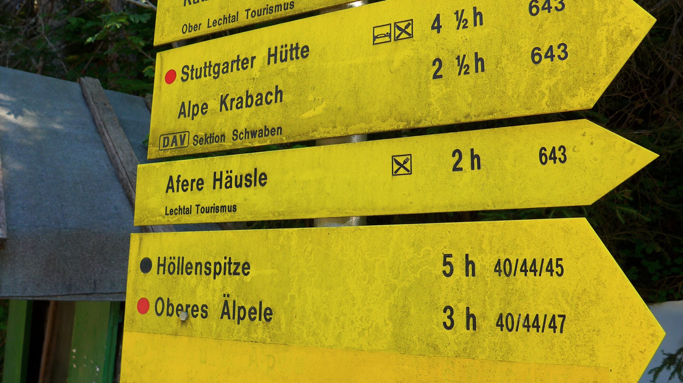 Der Weiterweg ist dann eher eine Pfadfinderleistung. Mit einer guten App oder der AV-Karte 3/2 Lechtaler Alpen findet man aber zum Älpele hinauf. Von dort zeigen uns rot-weiss-rote Markierungen den weiteren Verlauf an. Grundsätzlich ist die Route aber laut Wegweiser schwarz (= schwer).