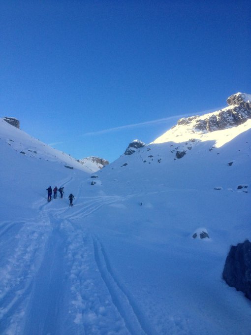Traumverhältnisse, Pulver pur, allgemein bereits gute Unterlage, im Ruosalperwald etwas Vorsicht geboten (einzelne Steine), dasselbe in Kammlagen (Schnee teils abgeblasen).Auf ganzer Tour nur ein einziger Steinkontakt.