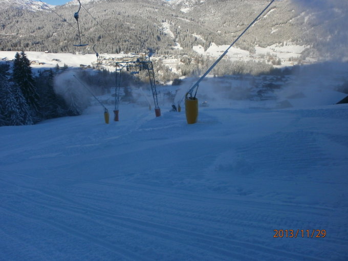 Piste gut beschneit, oben im freien Gelände ca. 50cm schöner Pulverschnee