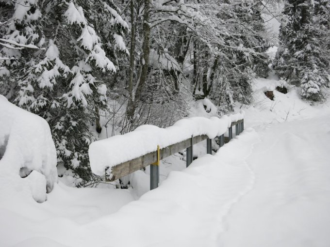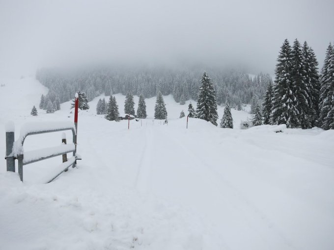 Viel Neuschnee und sehr strenge Solo-Spurarbeit. Normalerweise bin ich bei guten Schneeverhältnissen in gut 2 Stunden auf dem Gipfel. Heute brauchte ich über 1 ½ Stunden nur bis zur Alp Tolen… Auch war die Sicht im Nebel gleich „Null“, so dass ich einmal in einem Bachbett landete… Angesichts der schlechten Sicht- und Schneeverhältnissen, bin ich auf 1‘360 Meter, kurz oberhalb der Alp Tolen umgekehrt.