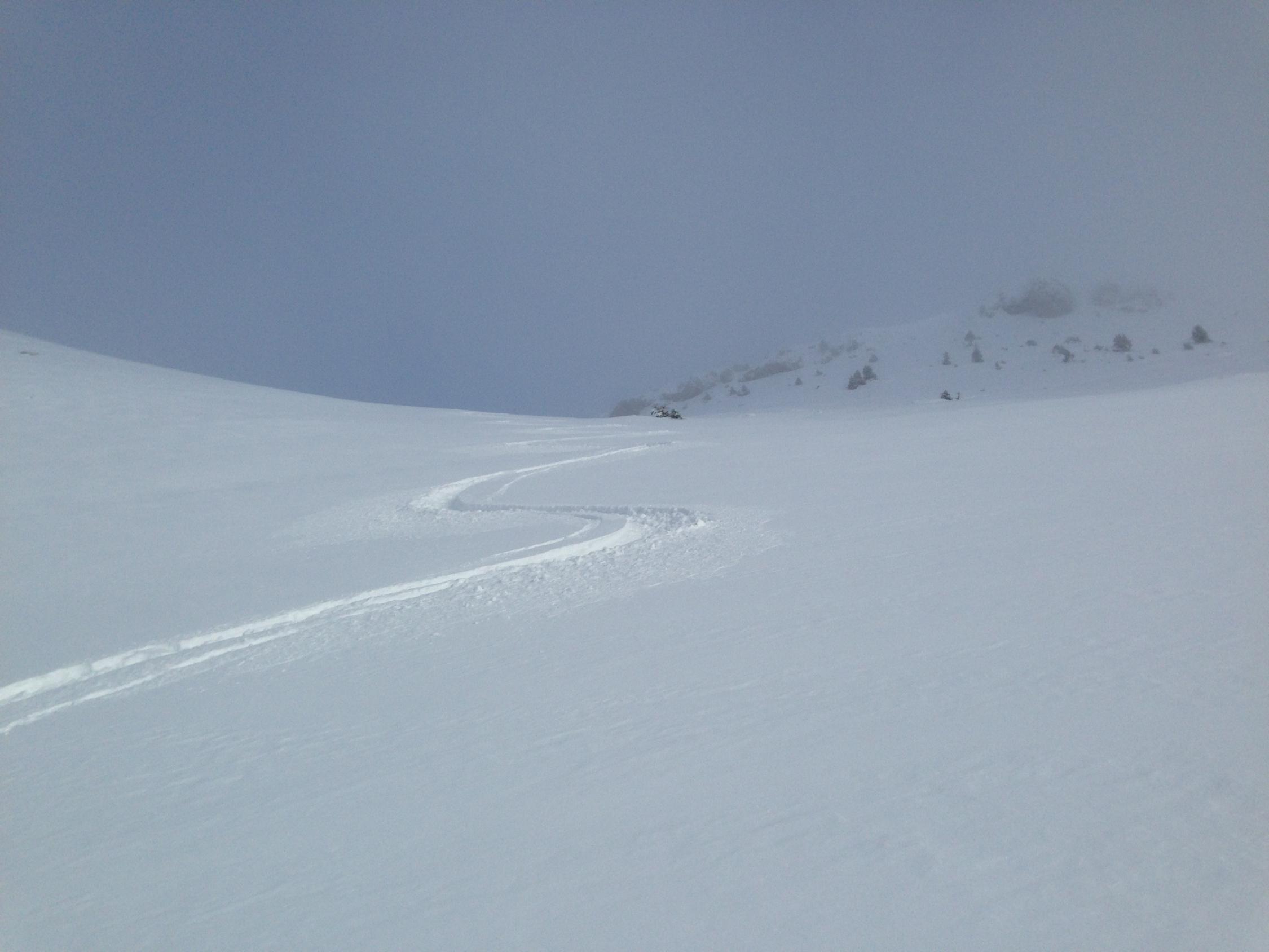 Bis auf 1500 eher zu wenig Schnee, heute aber gut zum Aufsteigen und auch flott zum Abfahren, allerdings ab Alts Läger nur noch grüne Kurven, die aber auf der Alpweide doch schön zu fahren waren.