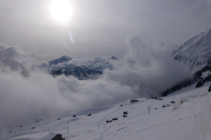 In den nach Osten exponierten Hängen teilweise etwas Schneeverfrachtungen und daher super Pulver.