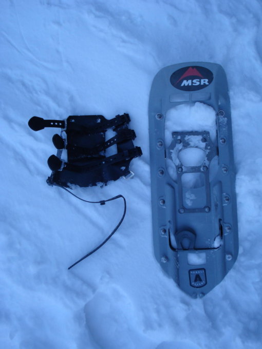 Schneeschuhbindung beim Abstieg auf ca. 1500m gerissen: zum Glück erst da, wo die Fahrstrasse schon gut ausgefahren war...