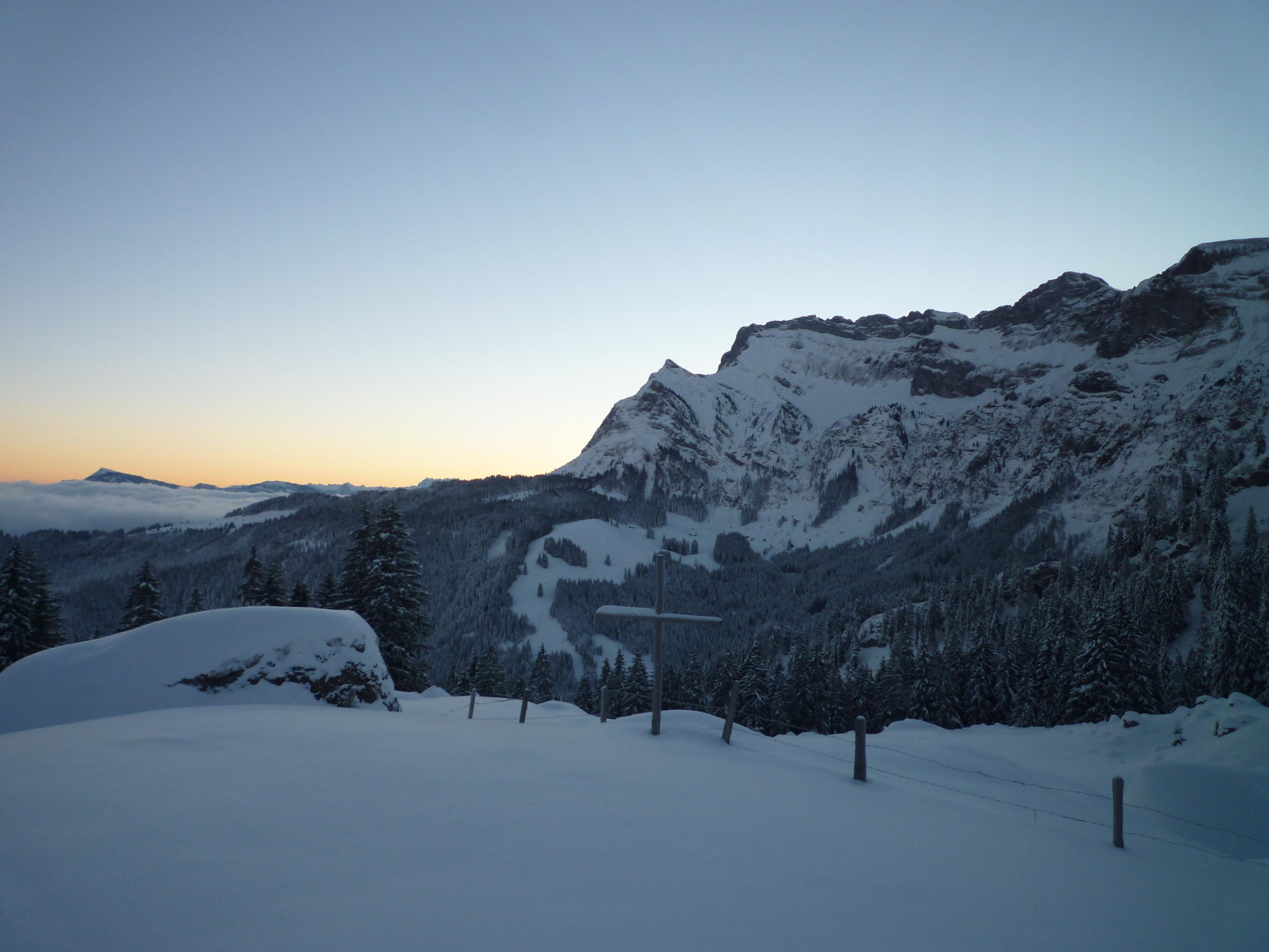 Wer eine kleine, schöne Ski oder Schneeschuhtour machen möchte, ohne viel Volk, der ist hier sicher im Moment richtig aufgehoben. Morgens haben wir niemanden getroffen und waren ganz allein in der Idylle.