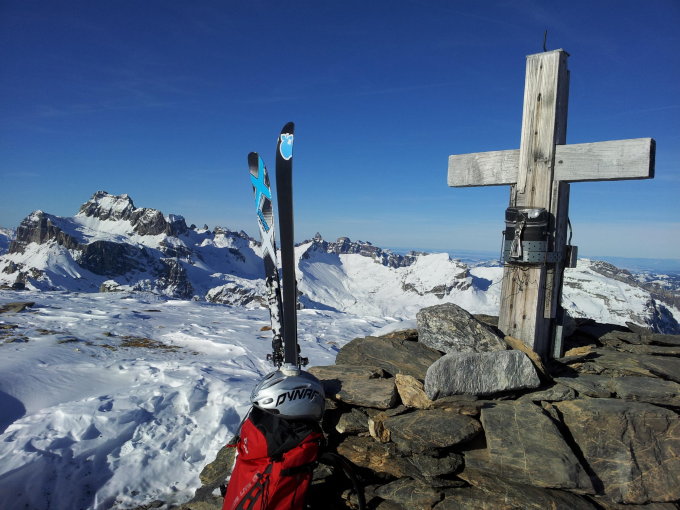 Nordseitig Pulver, nur wenig Windeinfluss, ausser auf der Gipfelfläche. Steinkontakte sind nicht ausgeschlossen. Beim Start im Sali ca. 0° unten im Ried war es ca. -7°.