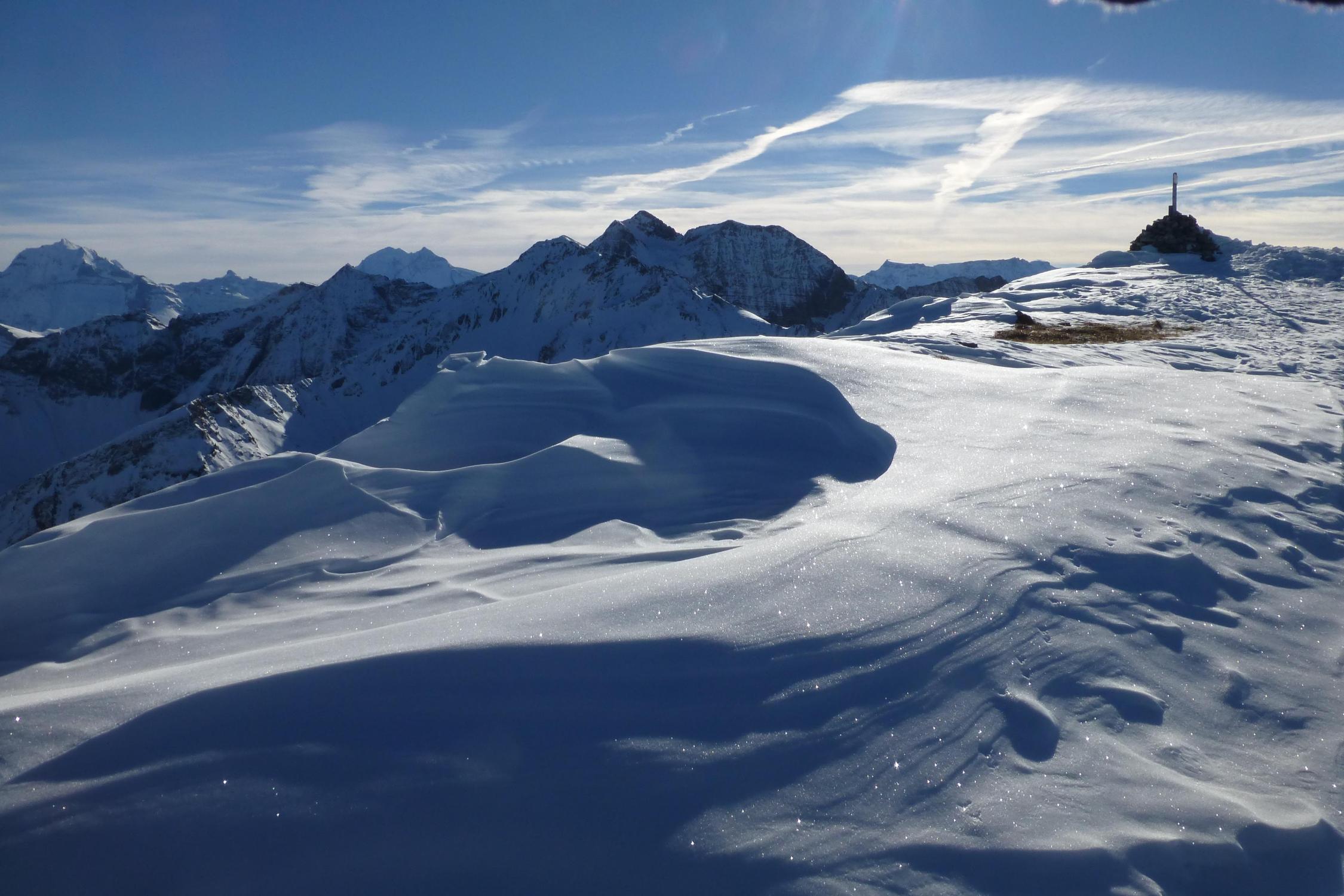 Es hat Schnee aber es könnte gerne ein bisschen mehr sein. Um es anders zu sagen: "es gab von alles etwas, Schnee, Gebusch, Steine..." Aber, und das war die positive Überraschung, auch Pulver!