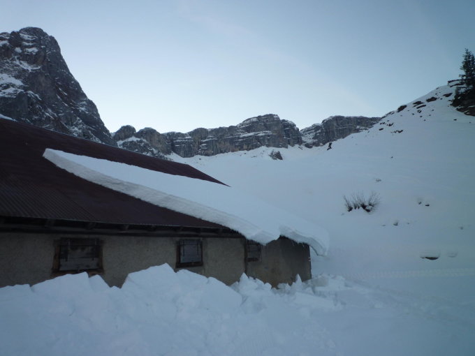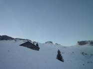 Ab Seilbahnstation genügend Schnee für einen schönen Aufstieg und eine rasante Abfahrt.