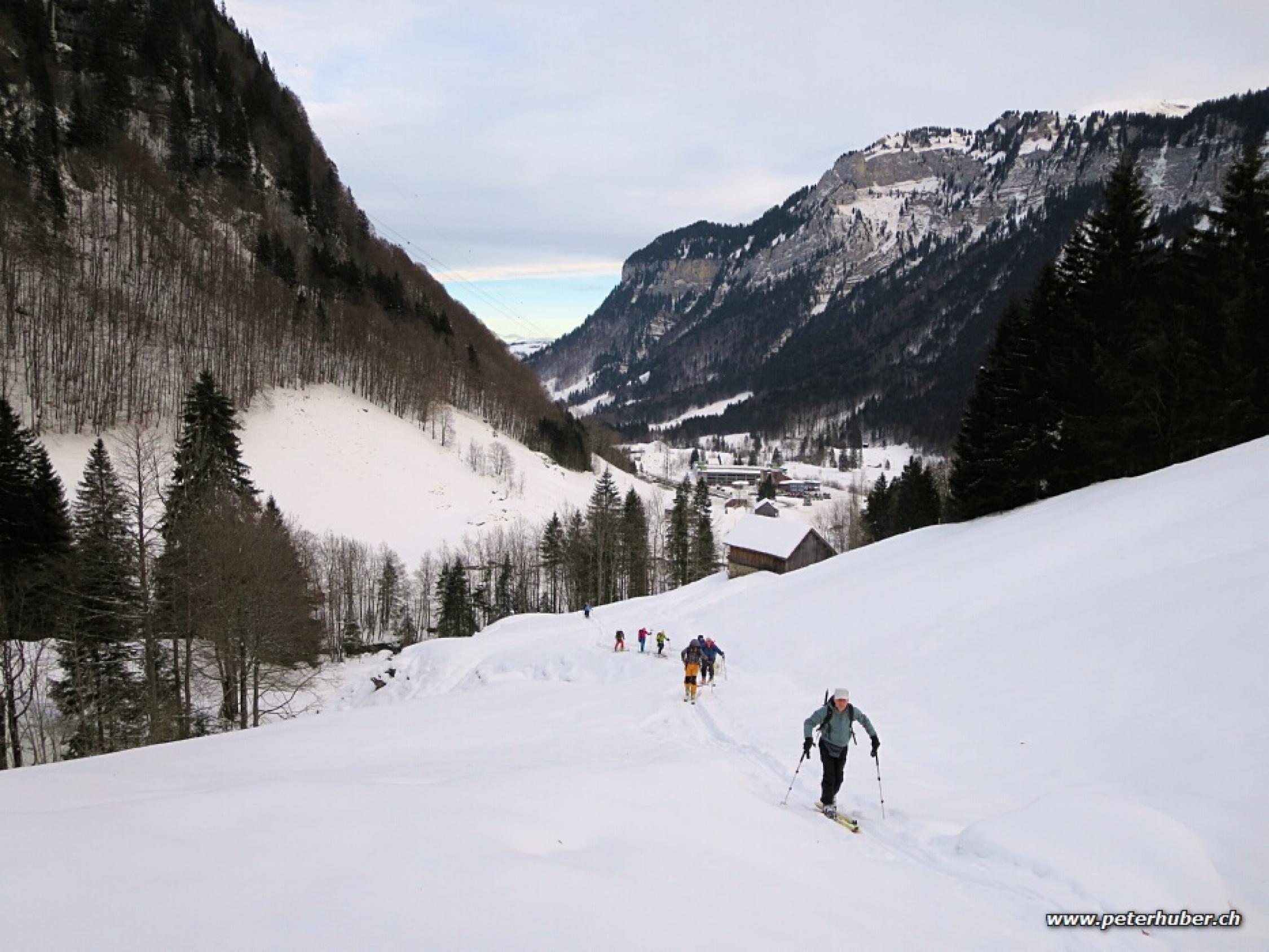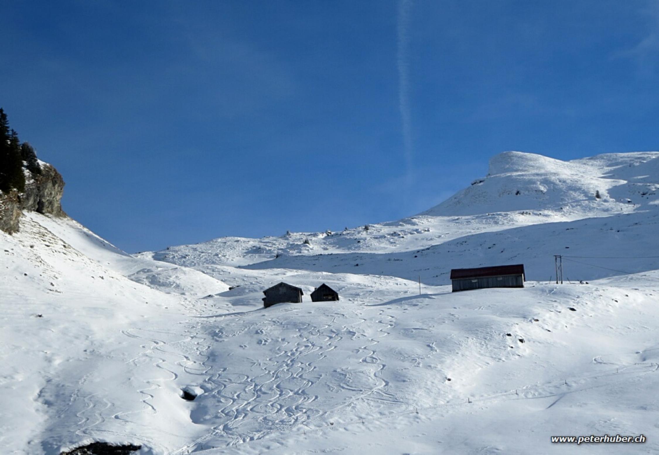 Meist schön, angenehme Temperatur, windstill. Es hat zirka 5 cm Neuschnee gegeben. Ab Weglosen genügend Schnee. Ob dem Wald windverweht. In den Mulden OK. An Sonnenhängen leichte Kruste.