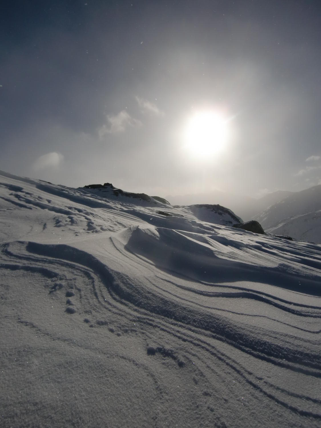 Im Gegensatz zu Bericht Bombo (Eggenmandli) völlig andere verhältnisse, der Wind hat volle Arbeit geleistet, entweder Winddeckel, Bruchharsch oder pcieklhart, ganz, ganz selten mal ein wenig Pulverschnee! Im Moment ist Tour nicht lohnend.