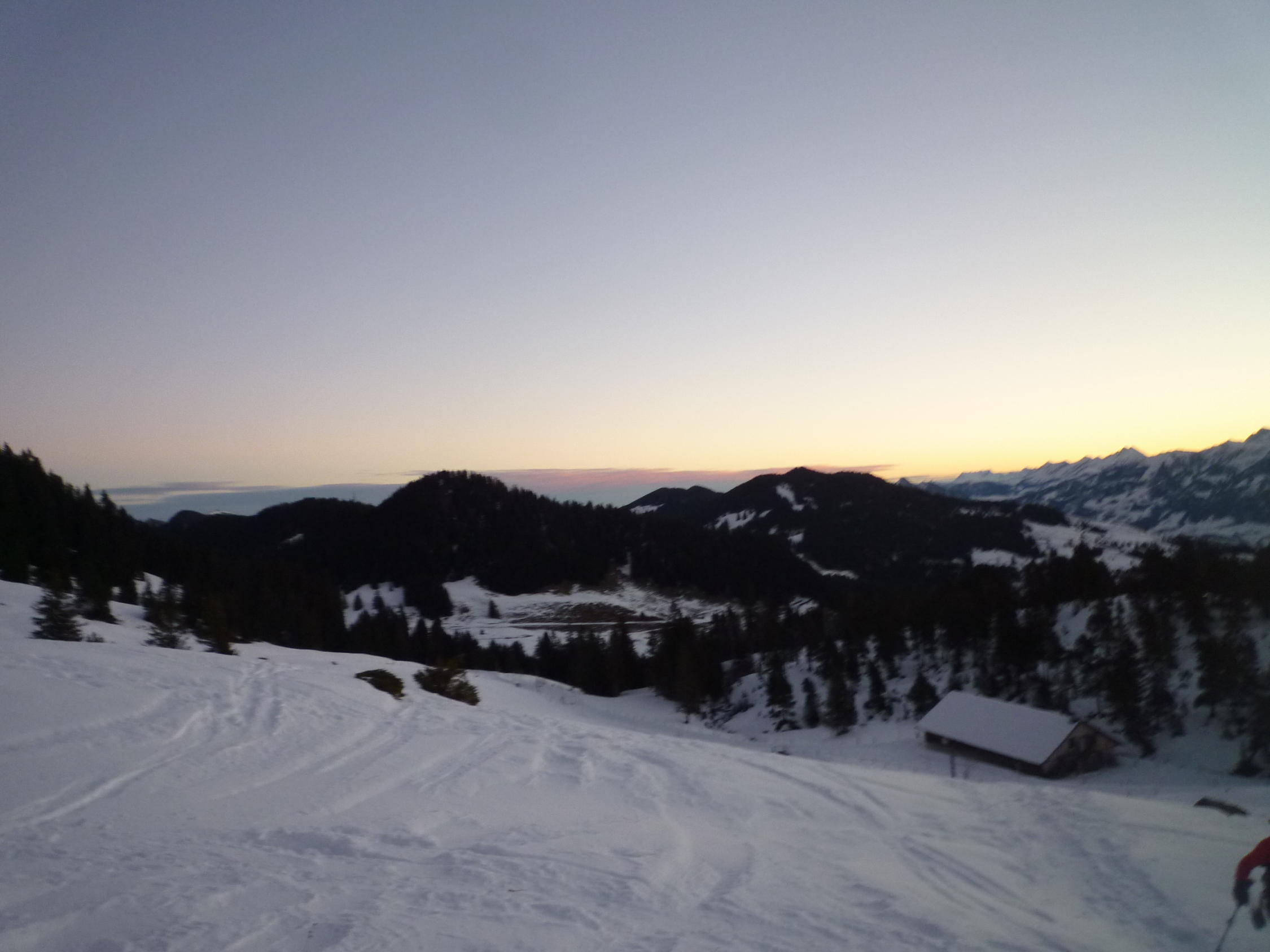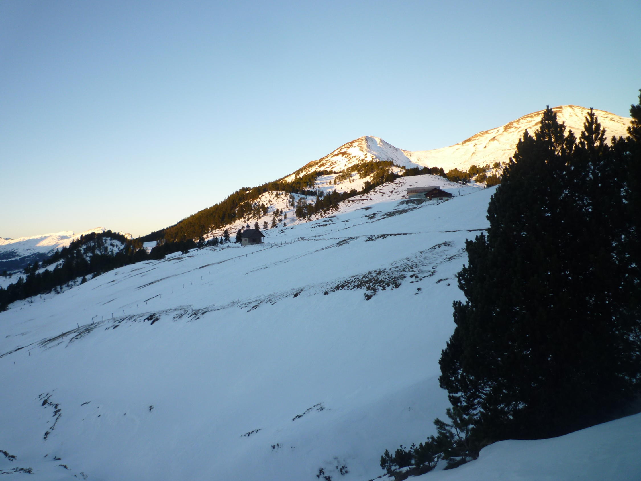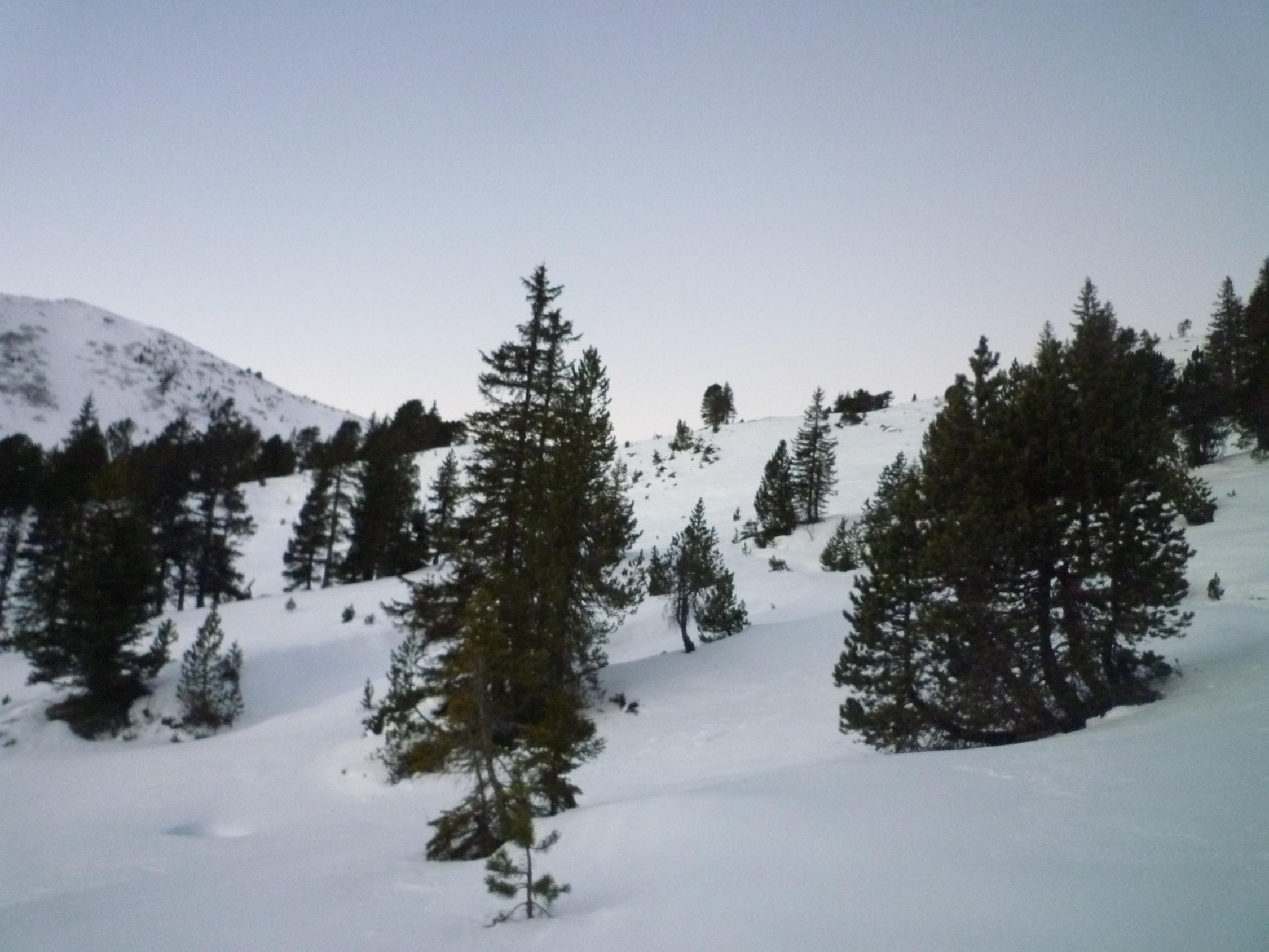 Ab Waldgrenze ausreichend Schnee, sogar Pulverschnee.