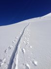 Obwohl ich die Tour schon 2x mal gemacht habe bin ich bei der Kirche zu weit Rechts und dann zu weit oberhalb von Matten herausgekommen. Die Einheimischen haben wohl gedacht wo will denn dieser Zürcher hin, egal. Ab Matten durch den Wald fast kein Schnee, man läuft viel auf Steinen und Tannenzapfen, aber man hat ja Felle. Bei der Stafelalp hat das herzige Beizchen offen, doch keine Zeit. Oben am Gipfel noch 3 andere Tourengänger angetroffen, welche aber wieder zur Stafelalp runtergefahren sind. Ich bin die normale Abfahrtsroute via Erber Berg runtergefahren, bis Punkt 1907 wunderbar, ich habe einsam meine Spuren gezogen, es hat noch leicht Pulverschnee, aber vermehrt Bruchharst. Dann durch denn Wald praktisch kein Schnee mehr, ich musste ca. 30min zu Fuss runterlaufen, schöner Kack. Trotzdem war toller Saisonstart.