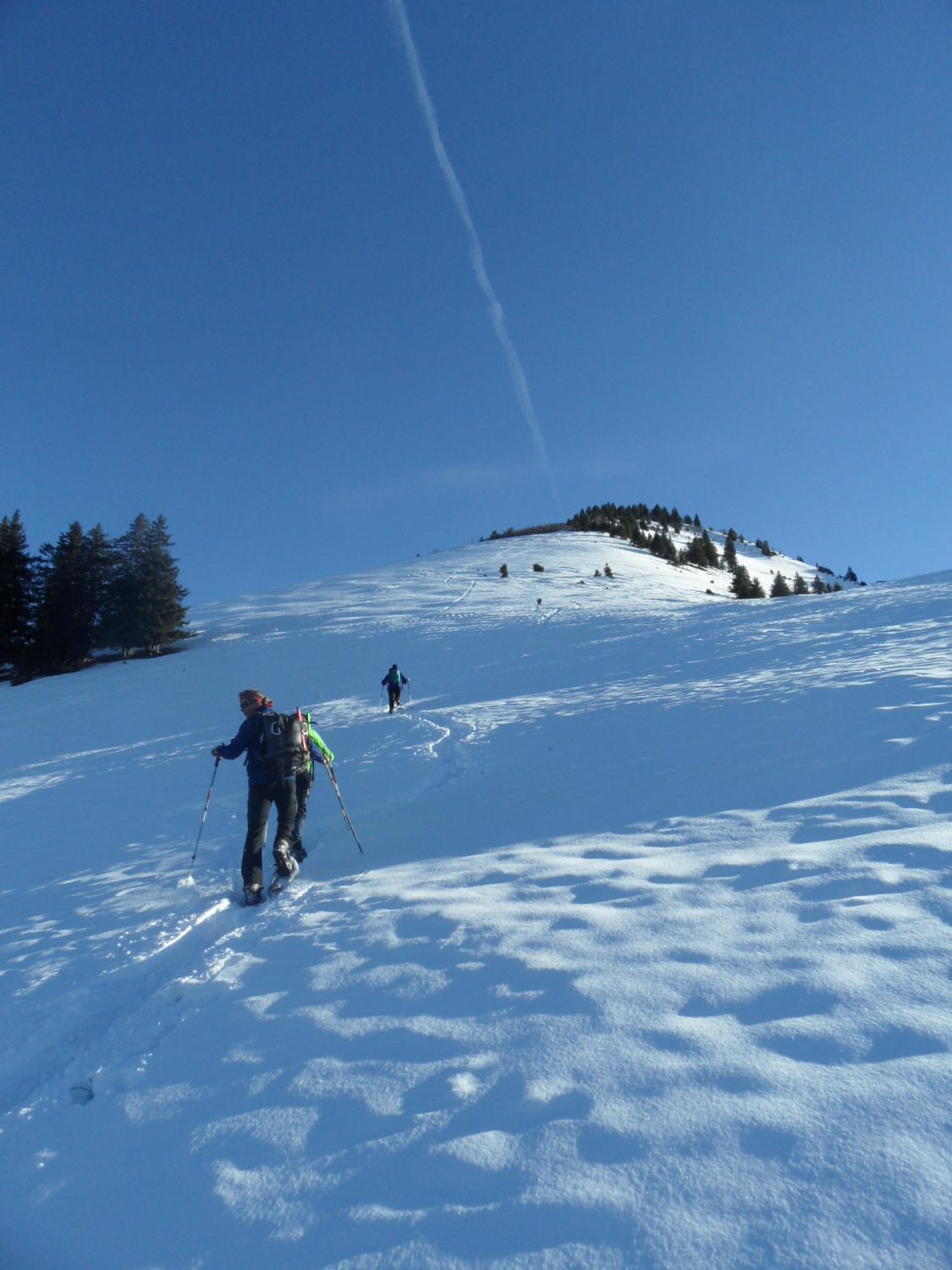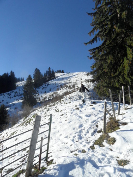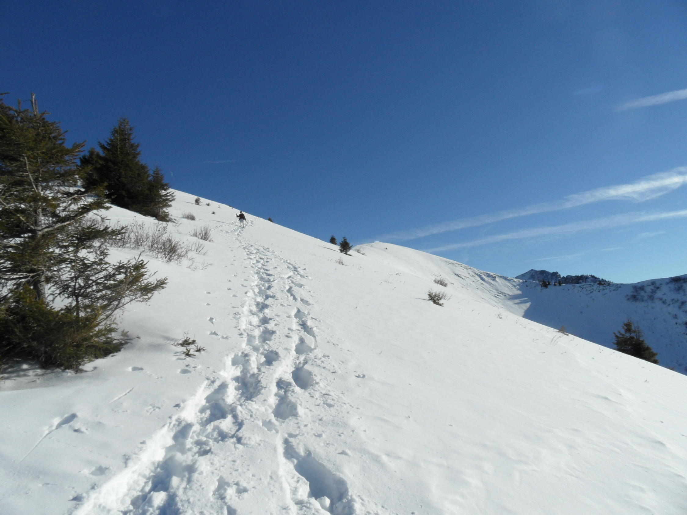 Schnee ab Start,zu Gipfel zunehmend.Für Schneeschuhe gut,für Skis zu wenig.