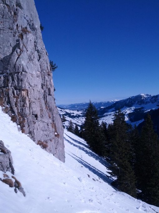 Mit Schneeschuhen in ca. 2h von Wasserauen hochgewandert. Die Wand trocken und wird vonder Sonne aufgewärmt. Das Wetter war praktisch windstill und mit Sonne sehr angenehm. Sichern war teilweise ohne Jacke möglich. Sonne bis ca. 16 Uhr.