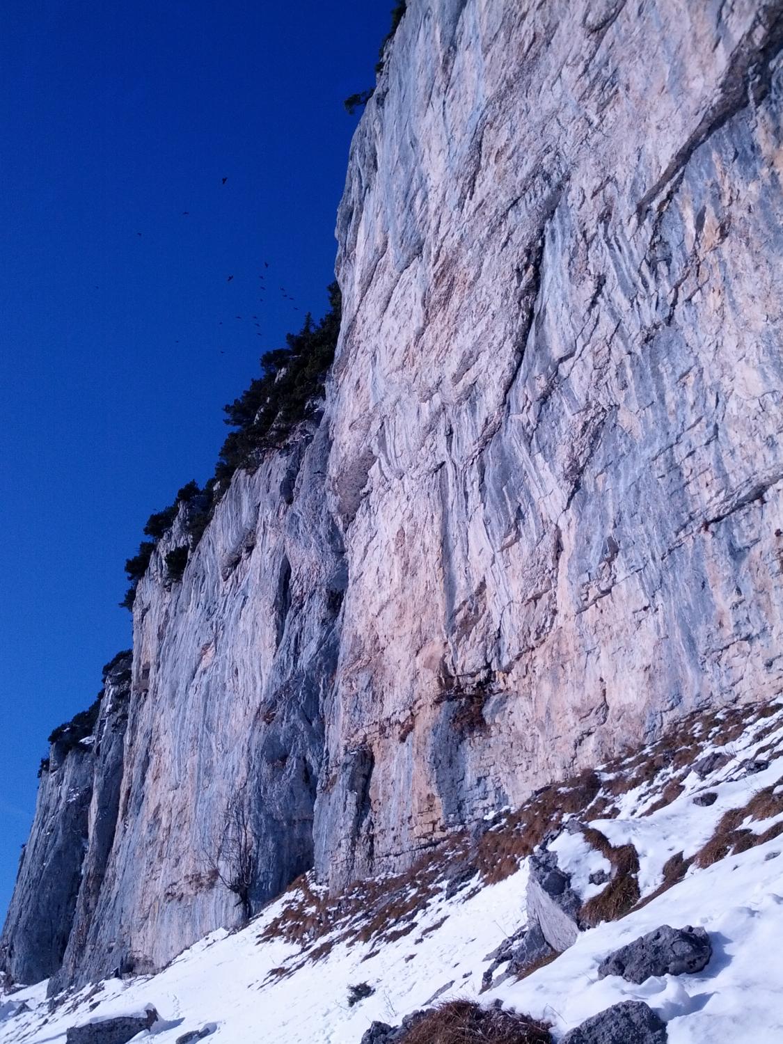 Beim passieren der Wände ist unbedingt auf herunterfallende Schnee- und Eisstücke zu achten und ein Helm zu tragen.