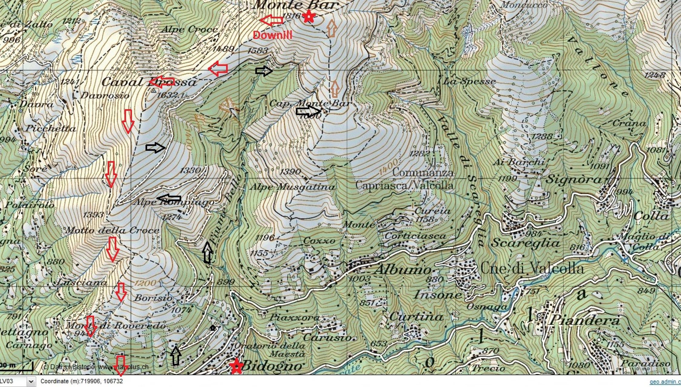 Von Bidogno Valcolla nach Monte Bar , Caval Drossa Motto della Croce , Somazzo und Bidogno