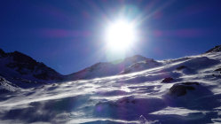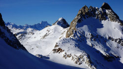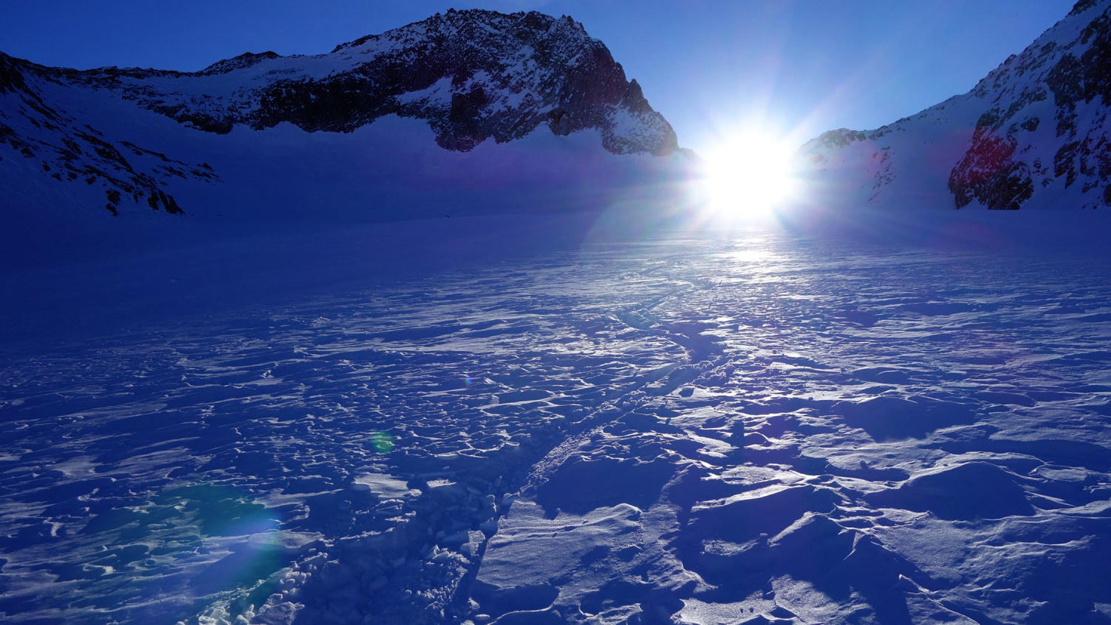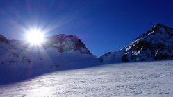 Wer schöne Schwünge in schönem Schnee machen will, muss wohl warten. Ich finde aber, der Schnee wird überbewertet. Es hat Schnee, das genügt. Nur schon in der Sonne in den Bergen unterwegs zu sein, ist toll! Mit guter Routenwahl lagen heute gut 100m Pulver drin...