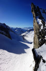 Nach dem Skidepot auf etwa 2900m gehts den einfachen Grat hoch bis zum Vorgipfel auf 3025m. Auf den Hauptgipfel auf 3082m hab ich mich nicht getraut, so verdammt steil sah der Weg dort hinauf aus. Hoch komme ich immer, aber runter, hmmm...