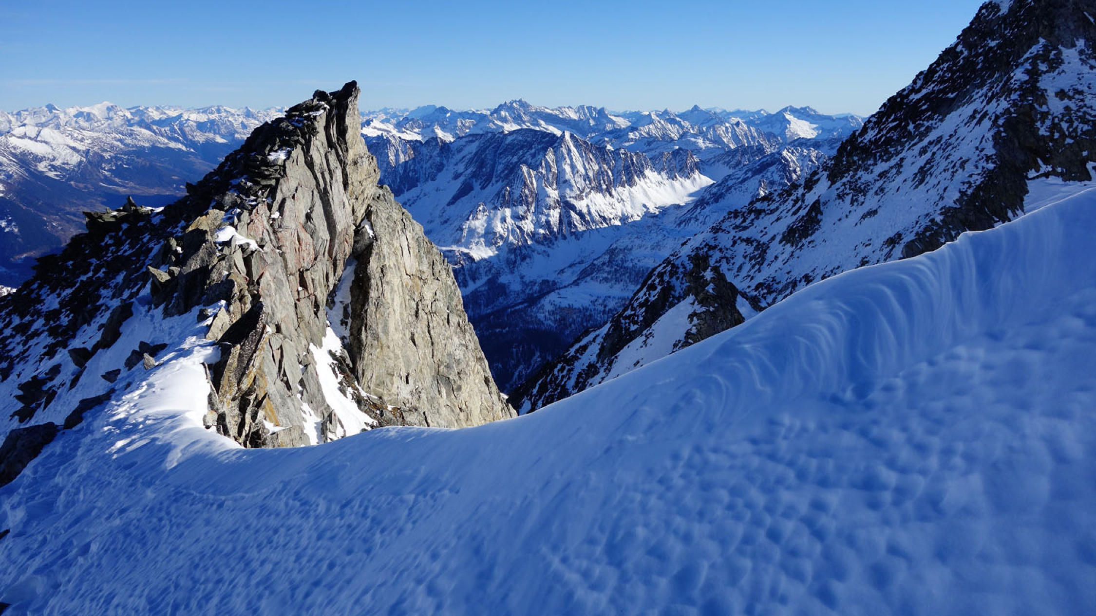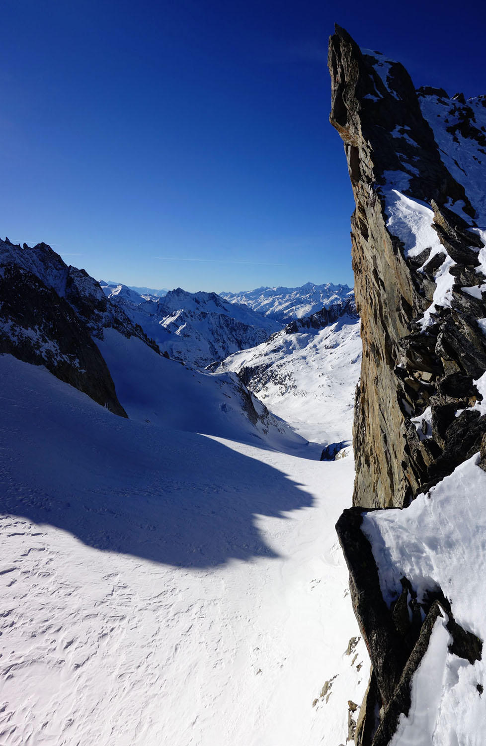 Im Rotondogebiet hat es genug Schnee für schöne Skitouren. Pulver muss man nicht erwarten, alles ist festgeblasen und hart, aber nicht eisig. Heute habe ich wieder keinen Stein touchiert :) Harscheisen sind für den Gipfelhang nützlich, Steigeisen/Pickel für den Hauptgipfel auch. Jedenfalls für Turnbeutelvergesser wie mich.