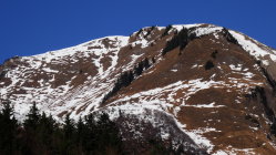 unten mehr Schnee als oben. Südflanke ziemlich ausgeapert. Für Skifahrer braucht es unbedingt mehr Schnee. Dann ist die Südflanke aber aufgrund ihrer Steilheit sicherlich heikel. Im Abstieg würde ich auf jeden Fall den Ostgrat empfehlen, da der Schnee zur Zeit schlecht greift und schnell wegrutscht.