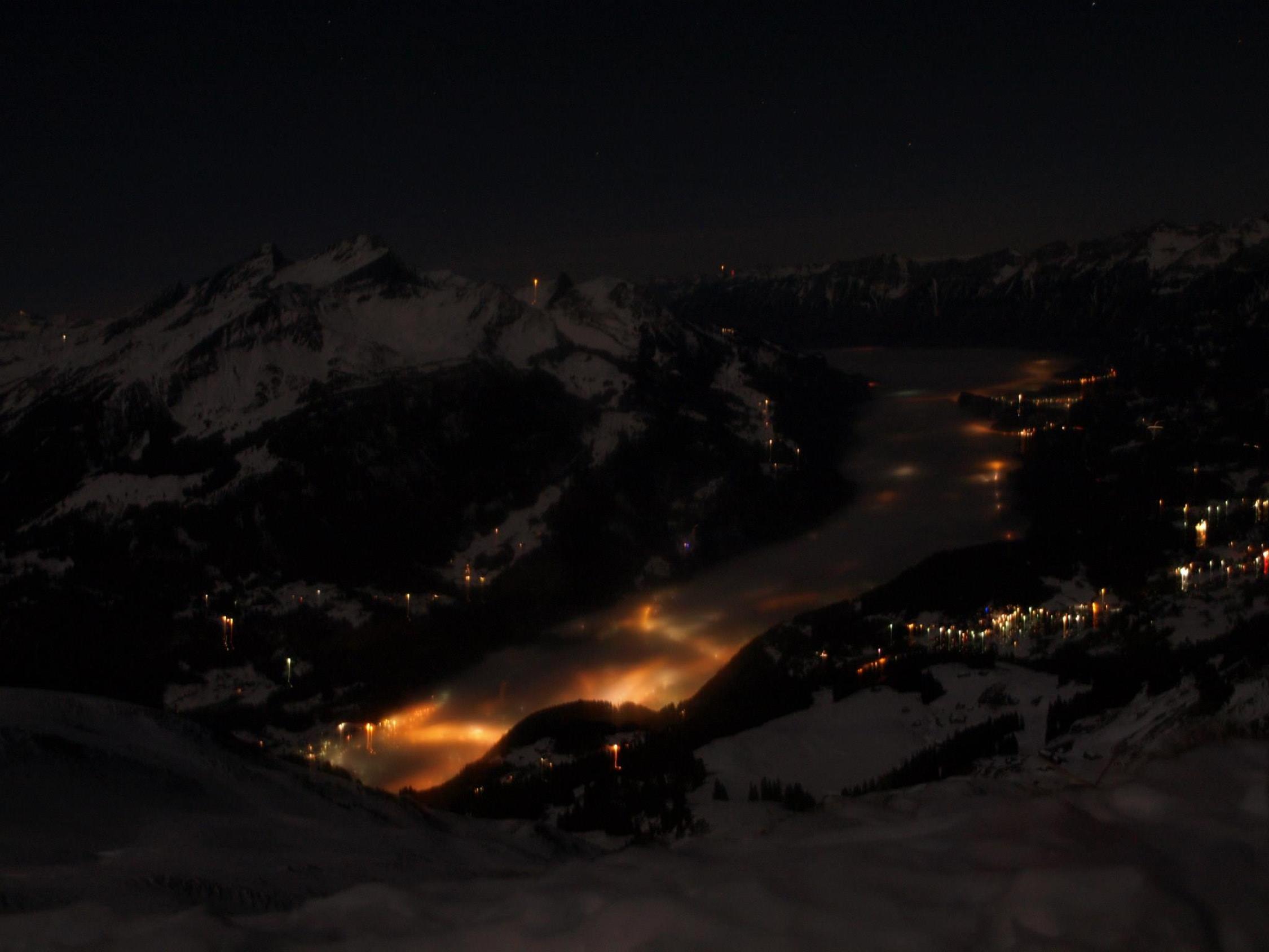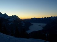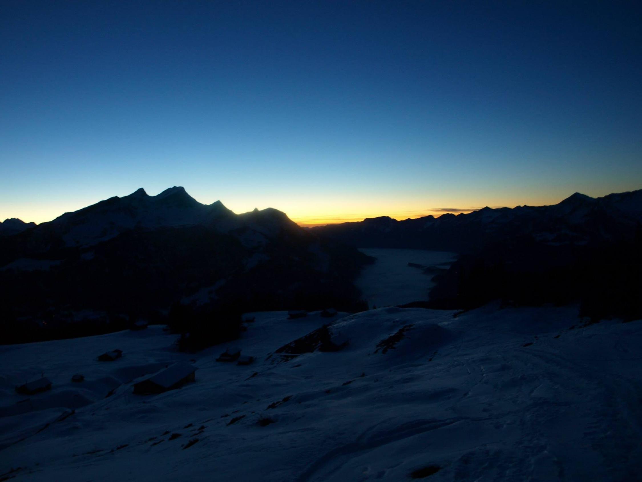 Spezielle Stimmung am Spätnachmittag mit Sonnenuntergang und Abfahrt im Dunkeln mit Stirnlampe.