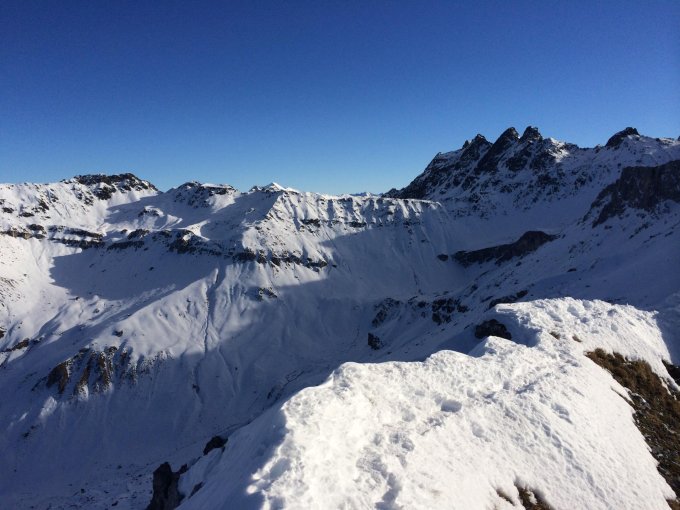 Wir haben die Abfahrt über die NE-Seite nach Gafia gewählt. Dabei querten wir zu den Nünzgen zu P2341 und weiter bis unter die Plattenflue. Von dort Abfahrt in hervorragendem Pulver bis wieder zurück zum Auto. Fantastisch!