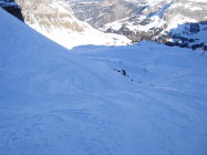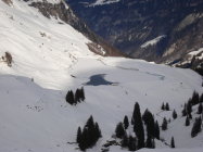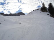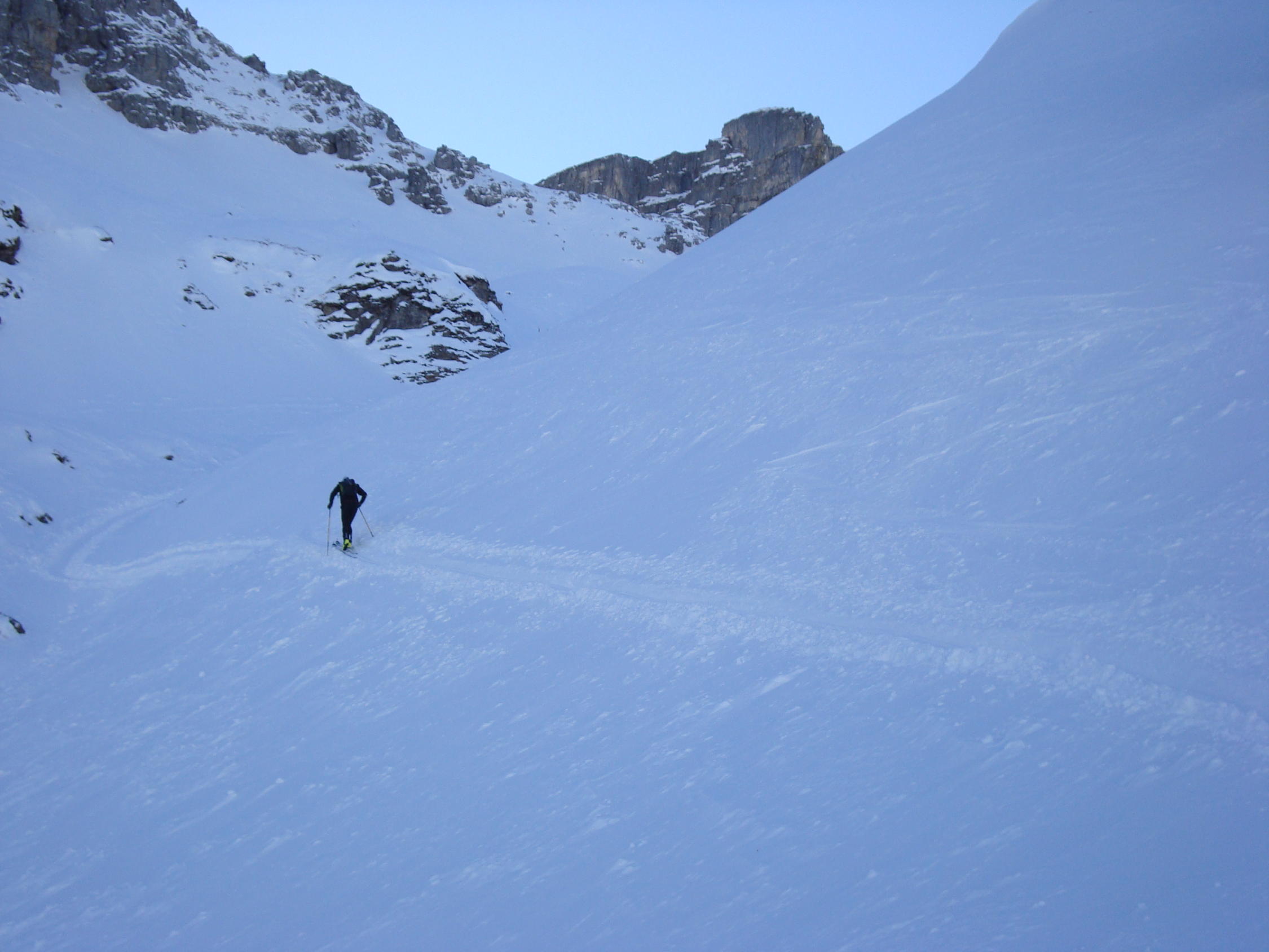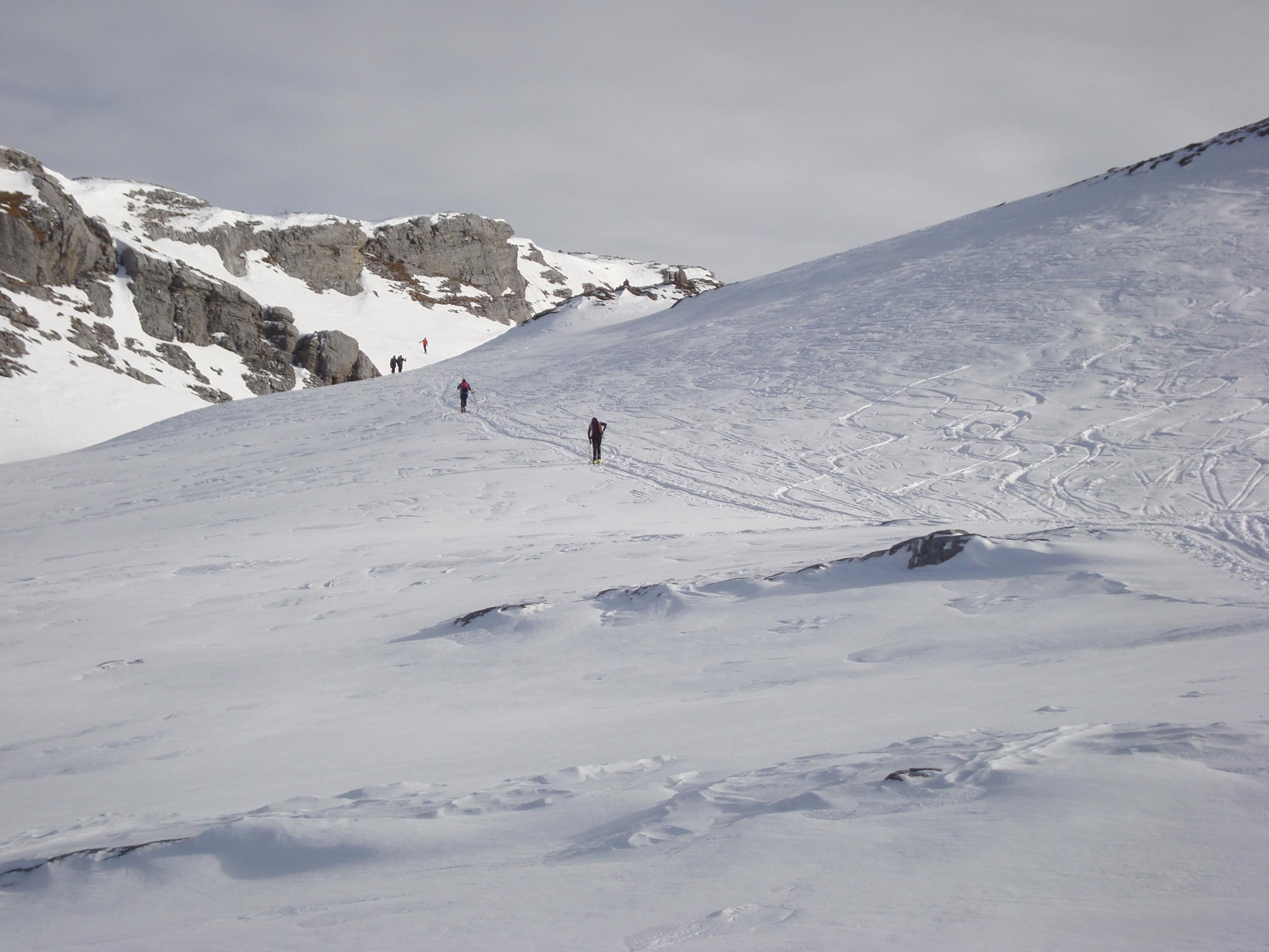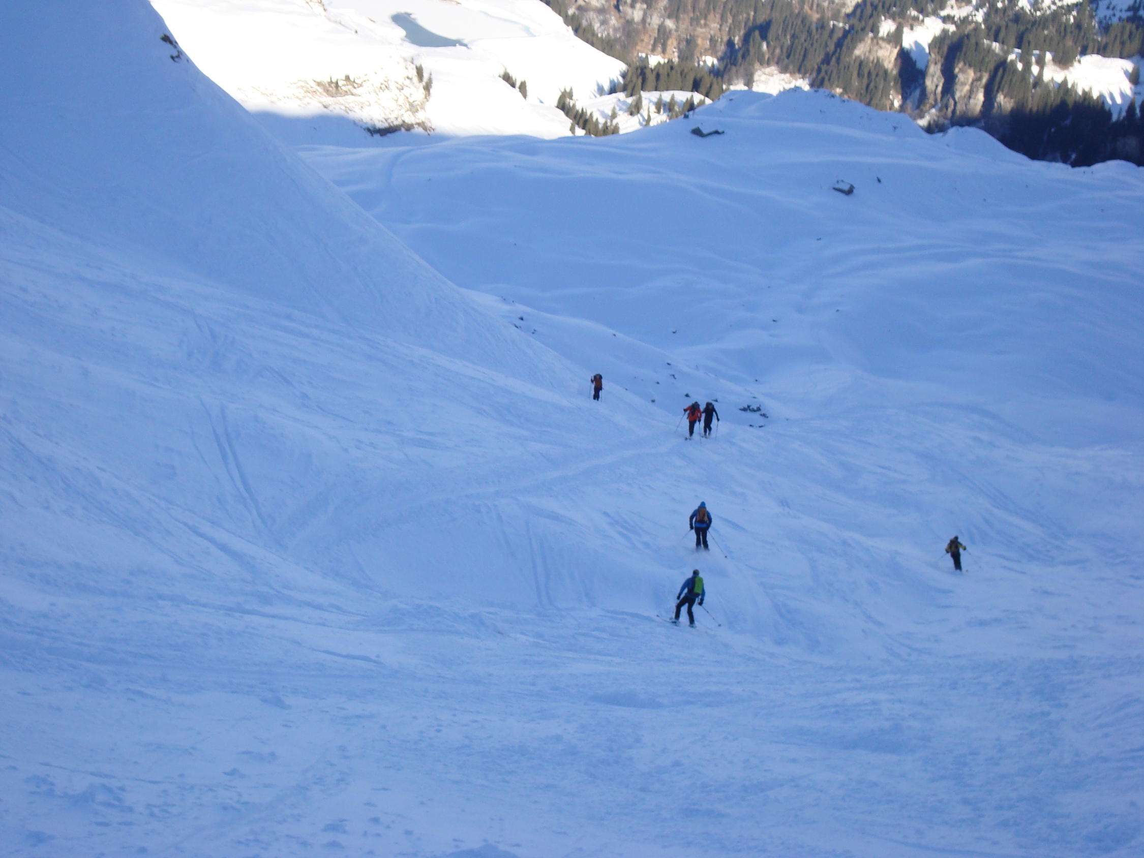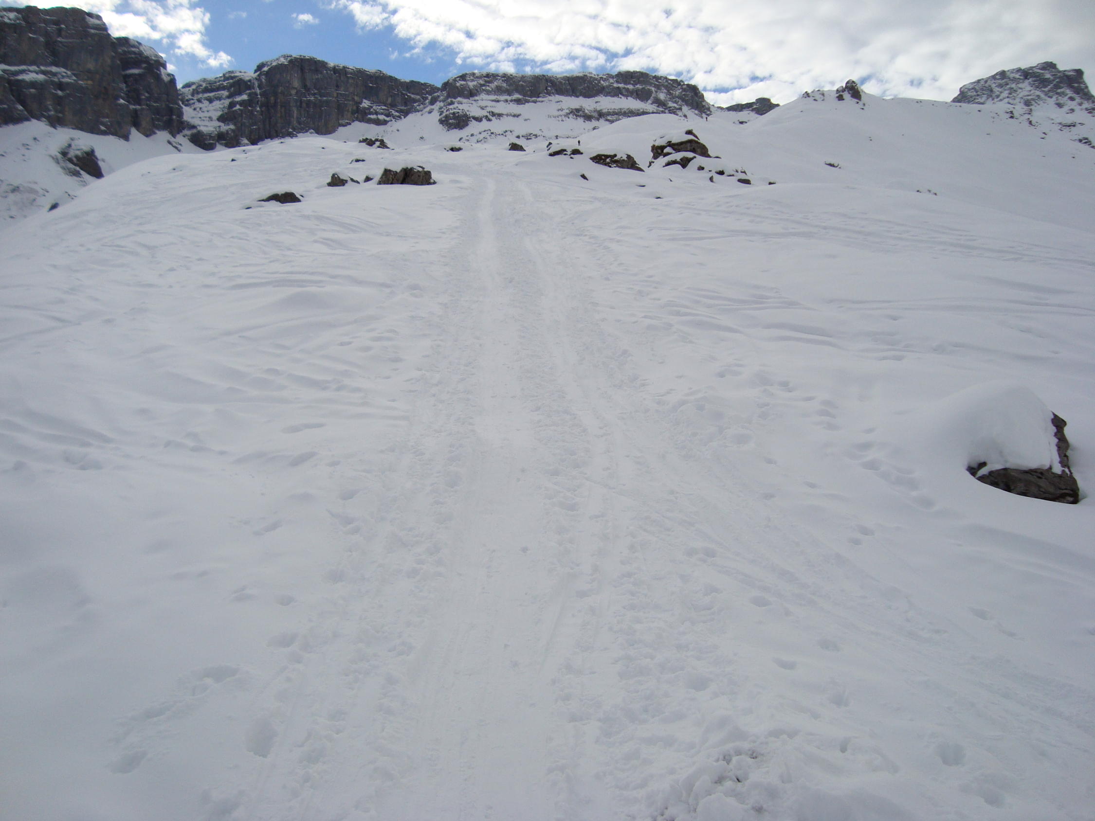 Heute waren sehr viele Leute im Gebiet unterwegs. Wen wunderts, sind doch meistens recht gute Schneeverhältnisse im Bisistal, wenn es woanders hapert mit der weissen Pracht. So auch heute. Wetter und Schneeverhältnisse waren heute recht passabel. Der ehemals schöne Pulver war zwar zum grösstenteil zerfahren, aber das ist man ja gewohnt an schönen Tagen. Steinkontakt war heute Mangelware. Ich bin heute, wie die meisten, die Aufstiegsroute wieder abgefahren. Die Nordabfahrt sieht noch sehr steindurchsetzt aus,aber Spuren sind vorhanden.