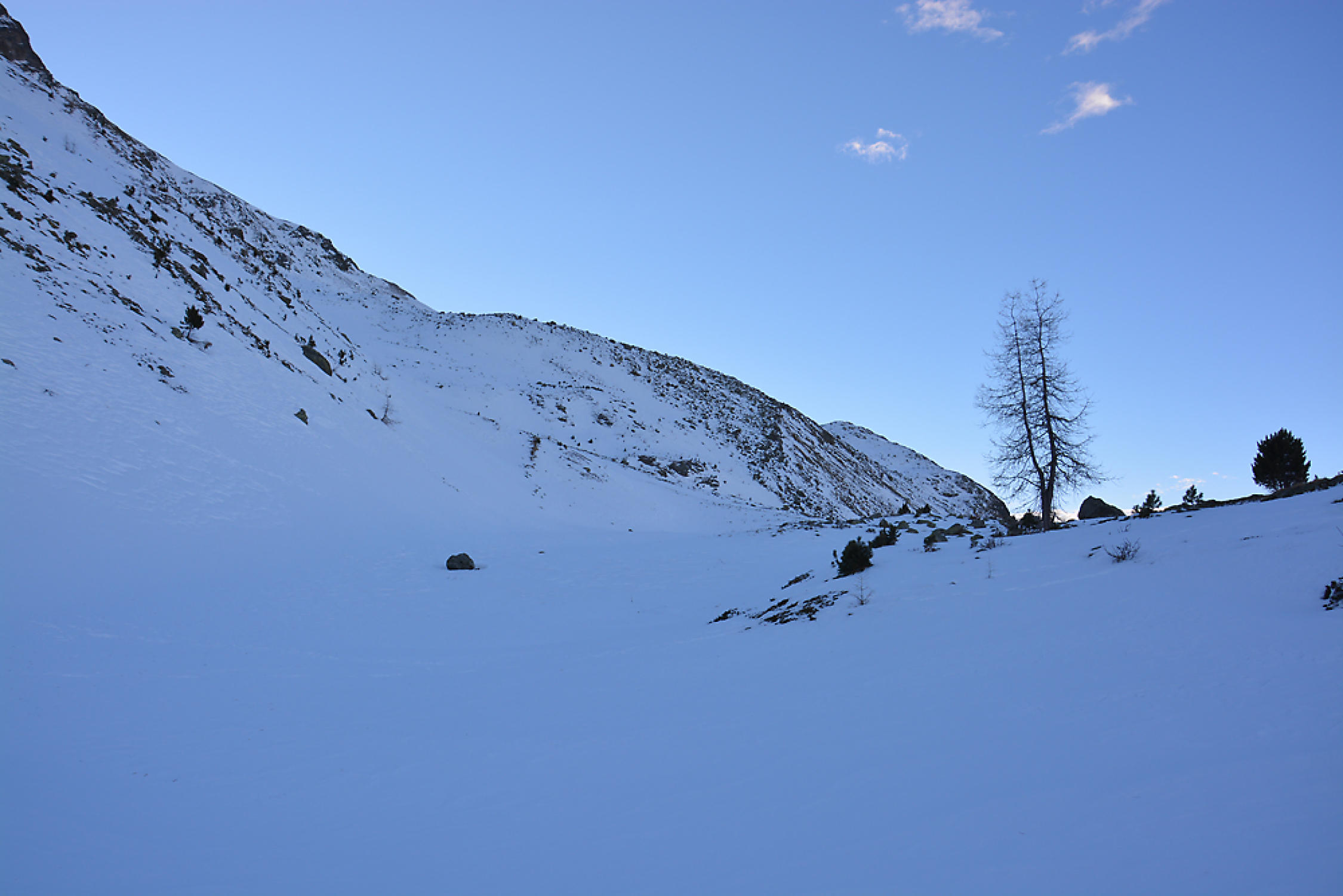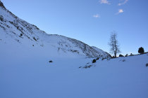 Abfahrt: Skidepot bis Sessellift-Bergstation "Giand'Alva" gut tragende verfestigte Schneedecke.