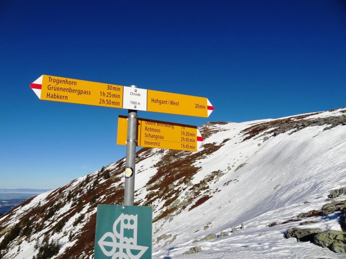 Korrektur nach Anschauen der Bilder: Beim Wegweiser-Bild "Chrinde", sollte der Weiser Richtung Breitwang, Innereriz mehr nach links d.h. hinunter zum Chrindeweg zeigen. Auf keinen Fall Richtung Gipfel. Hat da Jemand ein wenig gedreht? Oder war es der Sturmwind?