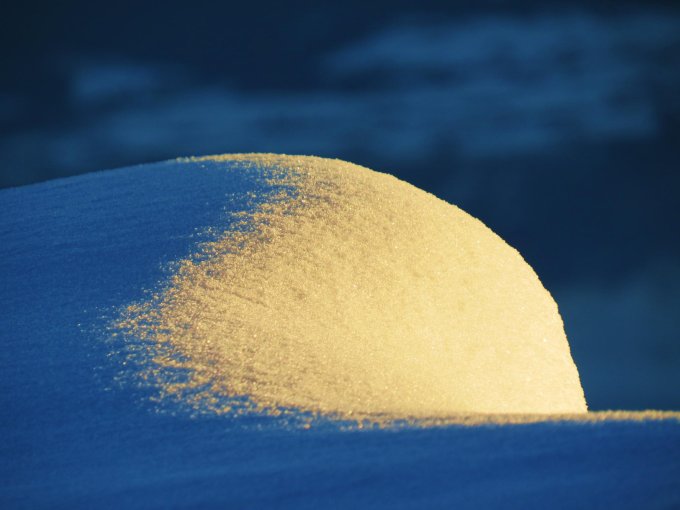 Schnee zum Teil schon weider verfrachtet. An Windexponierten Stellen bereits wieder ein Deckel vom Wind. In den Mulden zum Teil bis Knietief eingesunken. Schnee ist mit der harten Altschnee Unterlage nicht verbunden. Daher kleinere Oberflächenrutsche in steilen Rinnen.