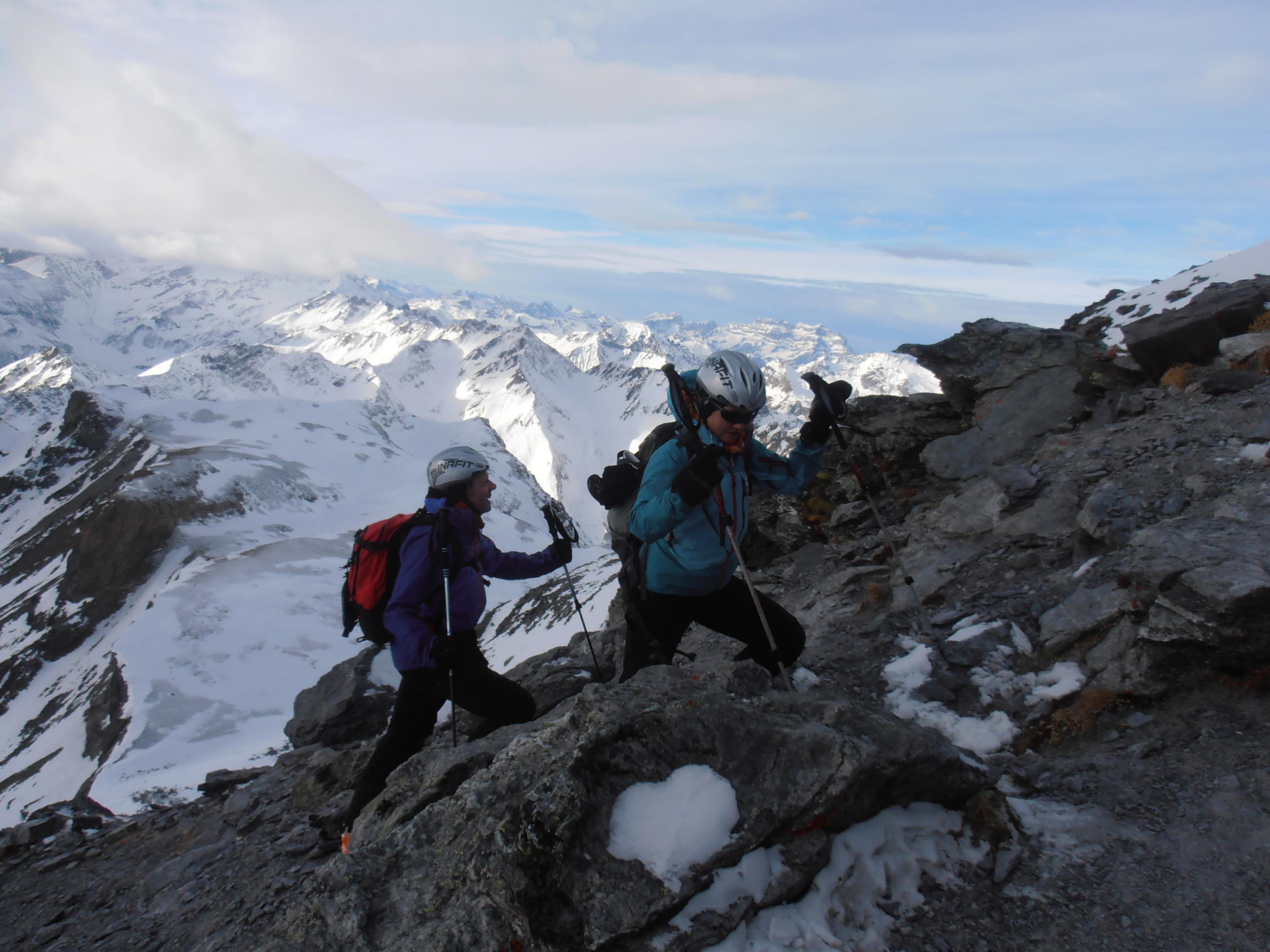 Tip, top, meist pistenähnliche Verhältnisse. Gute Aufstiegsspur alles ohne Harscheisen machbar. Gipfel problemlos ohne Steigeisen und Drahtseile liegen frei.