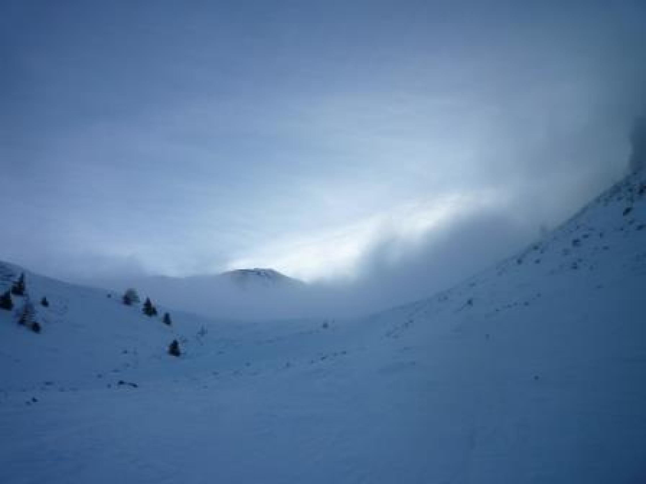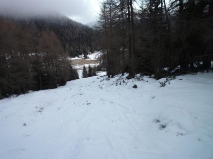 Wenig, aber noch ausreichend Schnee für diese Tour. Sehr sichere Verhältnisse und ein mehr oder weniger gut fahrbarer Untergrund. Grösstenteils zerfahren, teilweise deckel und hier und da einige Meter lockerschnee.