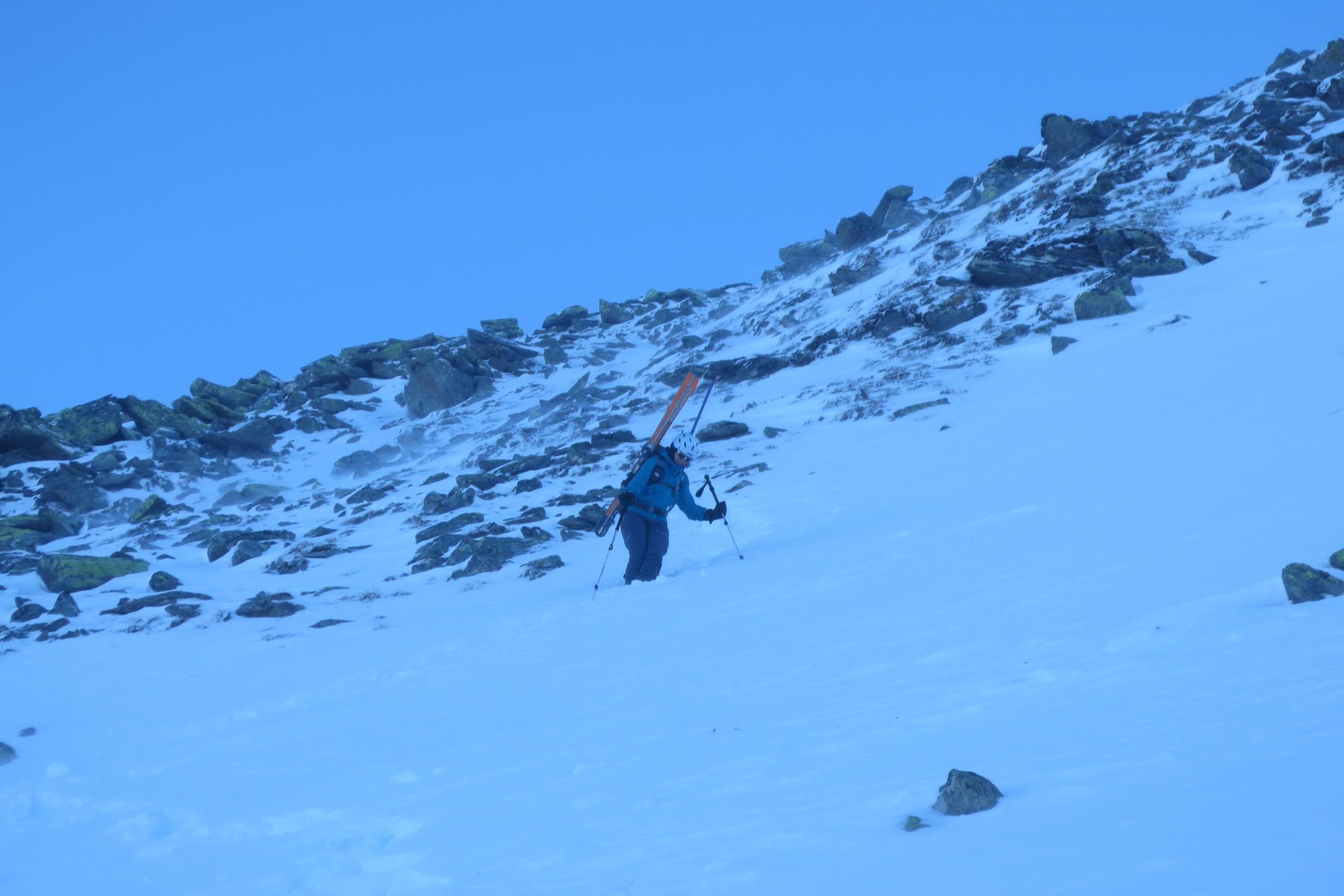 Bei Steilstufe vor Pkt 2361 ins Tal Puzzetta abgefahren, weil zu wenig Schnee.