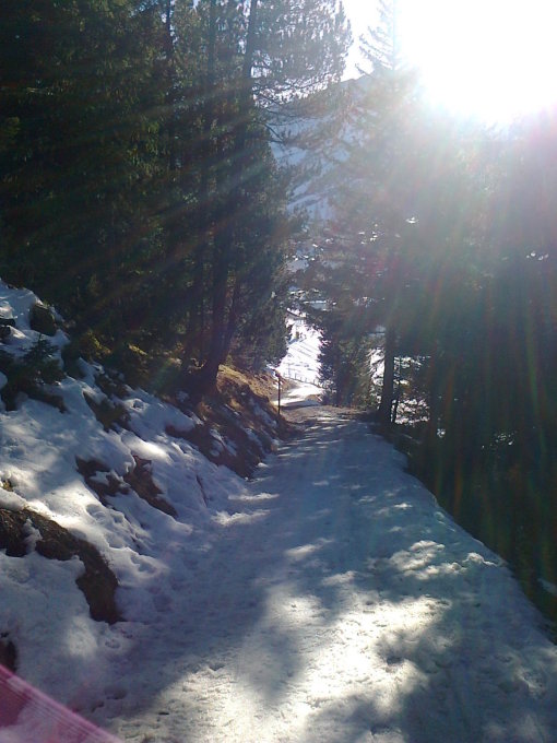 Sehr wenig Schnee, am Anfang des Schlittelweges 5-7 apere Passagen von jeweils 3-30 Metern und an den Südost- und Südhängen des Schönbergs windgepresster Bruchharsch abwechselnd mit Triebschneeansammlungen und sulzigem Matsch. Dauernd Steinkontakt und volle Aufmerksamkeit erforderlich. Nur eine Schneeschuhspur existierte.