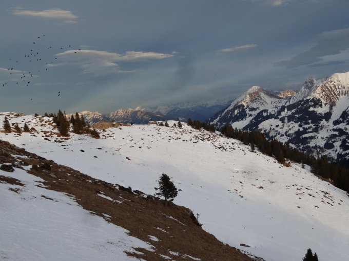 Über die Alpweiden kann man fast immer den aperen Stellen folgen. Auch im Wald nur sehr wenig bis kein Schnee.
