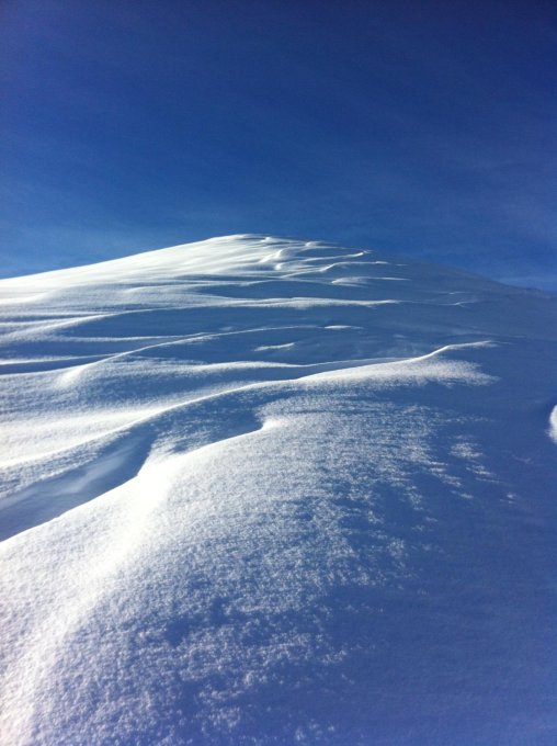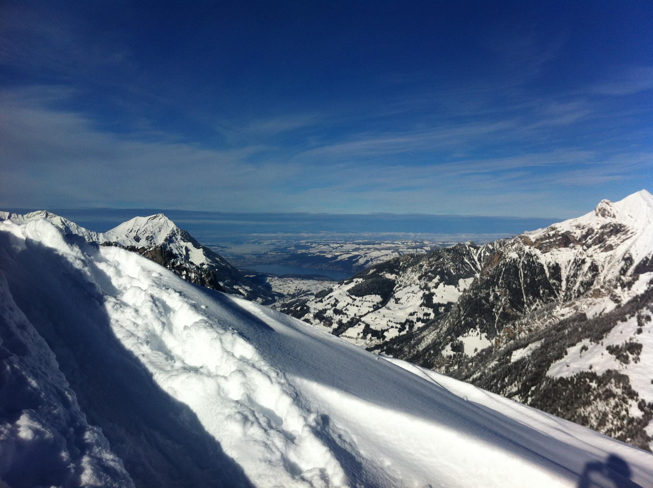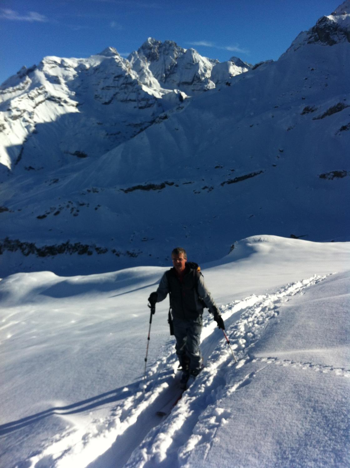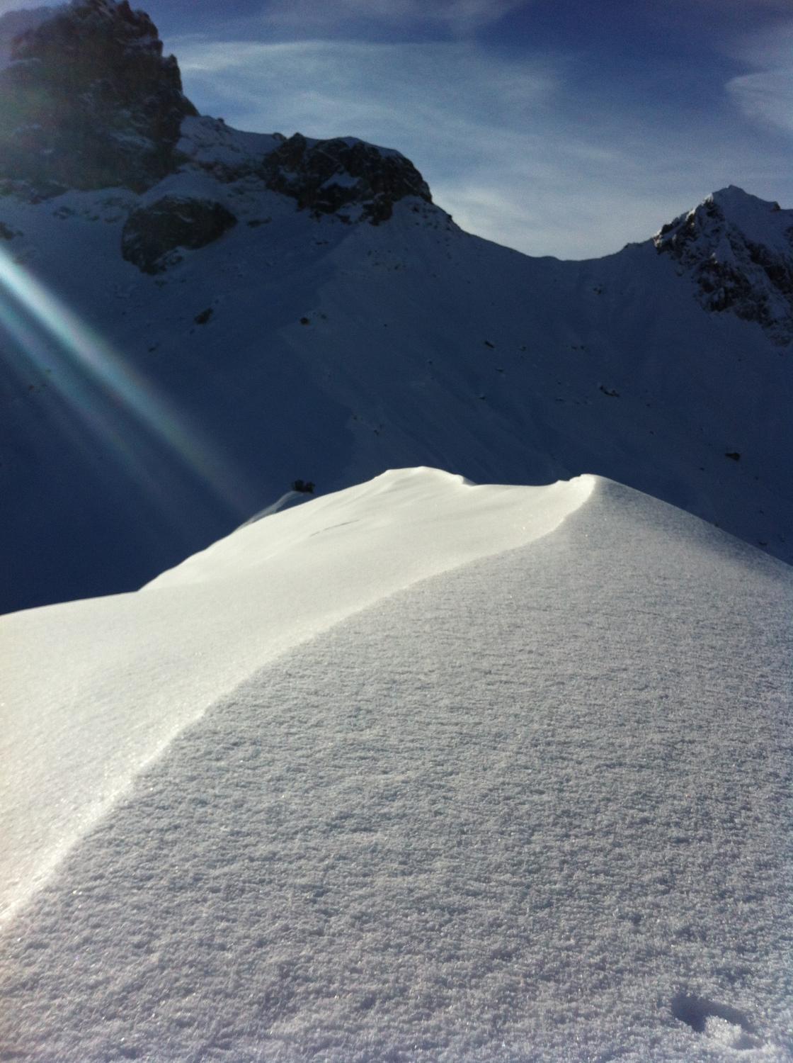 Wegen dem vielen Schnee nur wenige Skibögli möglich. Sobald du ausserhalb der Spur bist, und es flacher ist, musst du dich aus dem Schnee wühlen!