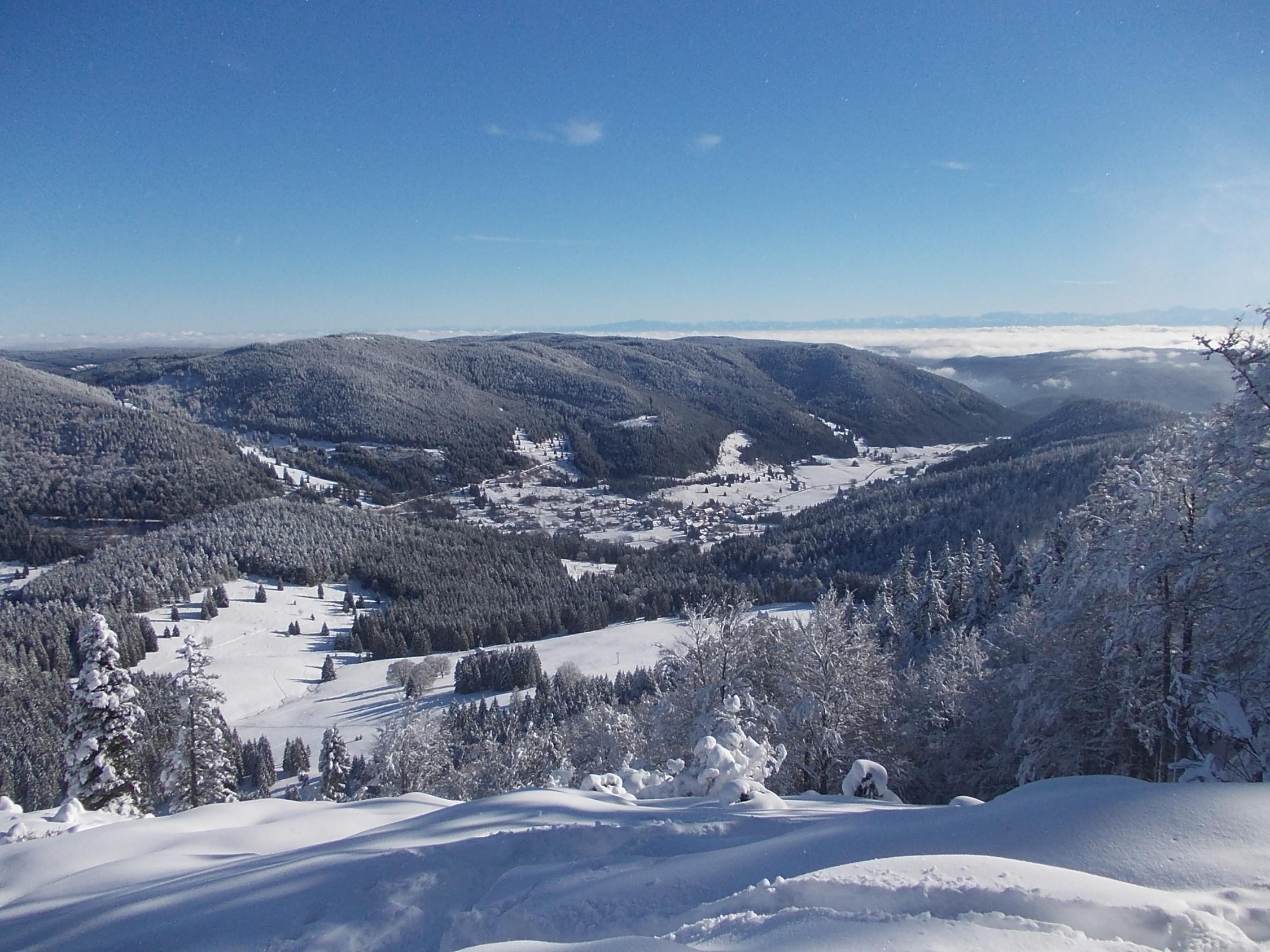 Die Region Feldberg/Herzogenhorn weist derzeit recht ordentliche Schneemengen auf. Das ist momentan nicht überall im Schwarzwald so. Auf der Hinfahrt über Waldshut und St. Blasien zeigten sich die Höhen des Hotzenwaldes nahezu komplett grün.