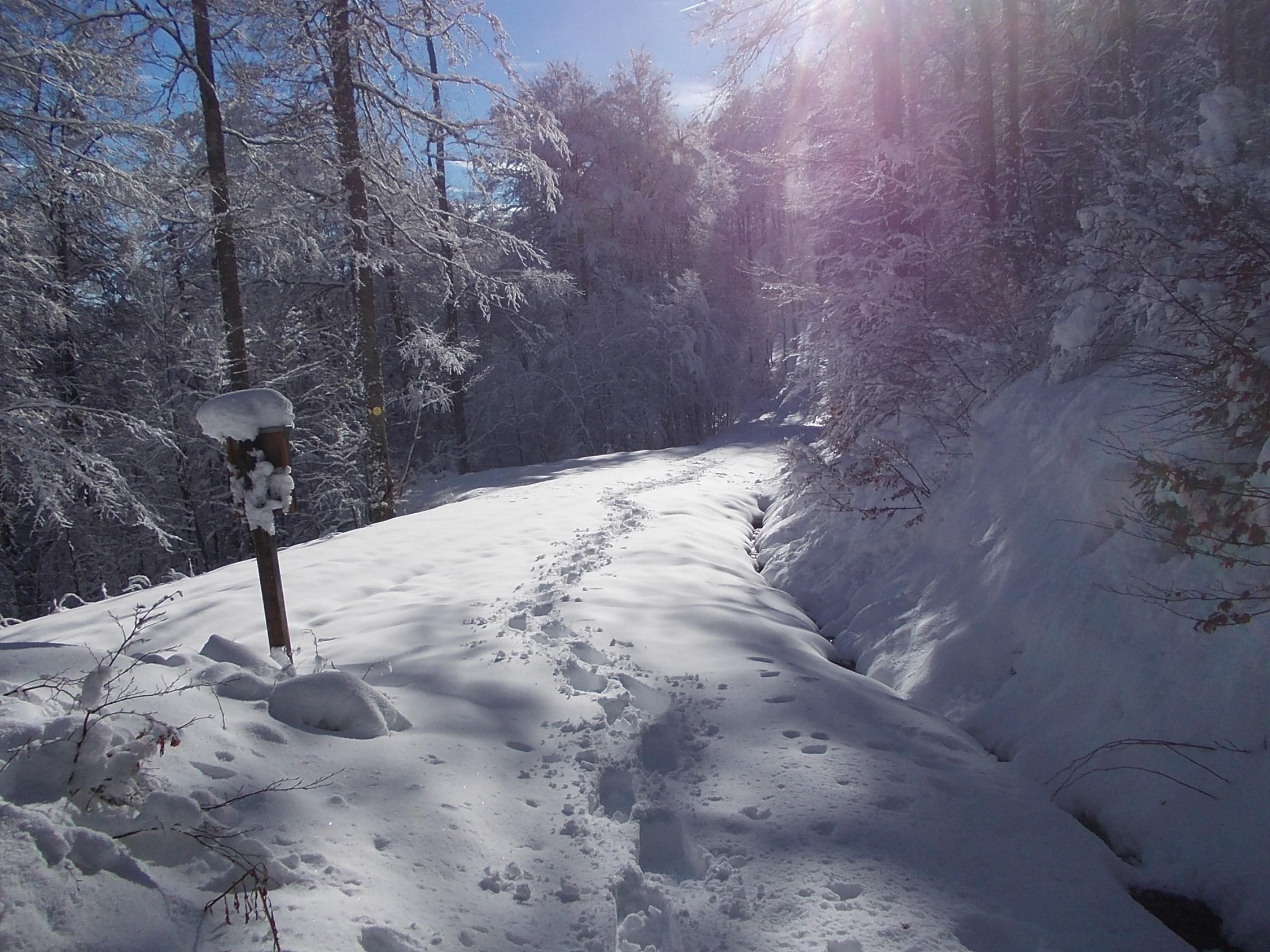 Im Tal war noch eine recht dünne Schneedecke, weiter oben dann genug, auch zum Spuren (gesamte Strecke bis hoch zum Spiesshorn).