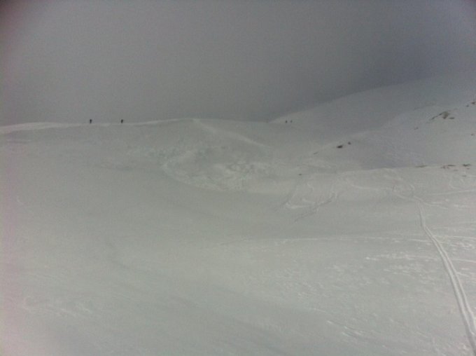 ca Tennisplatz gr Rutsche, auf weg zu 'gipfelaufbau', gesamtes Gebiet oberhalb Wald Mix aus Abgeblasen, Triebschnee, Pulverrest