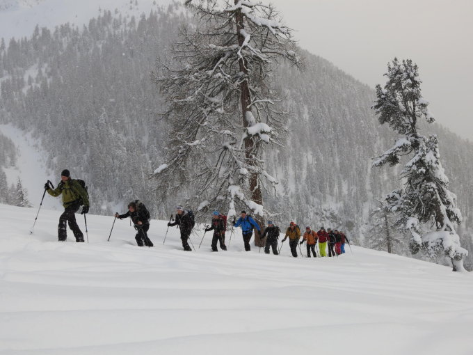 Von Zuoz Resgia in Waldschneise Richtung P. 2409 und weiter auf Gipfel