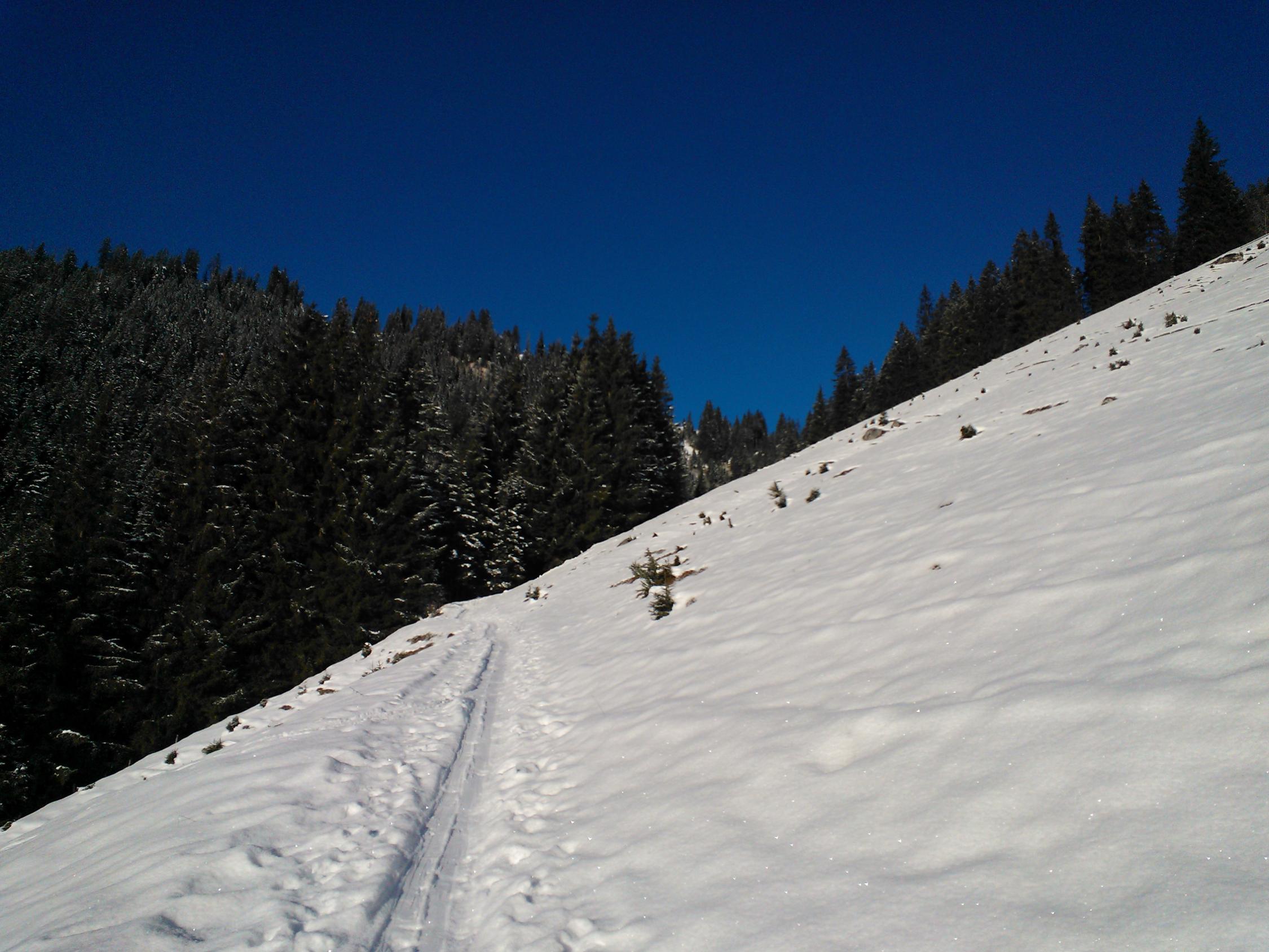Erstmals mit den neuen Ski unterwegs statt mit den Steinski. Ohne Feindkontakt!