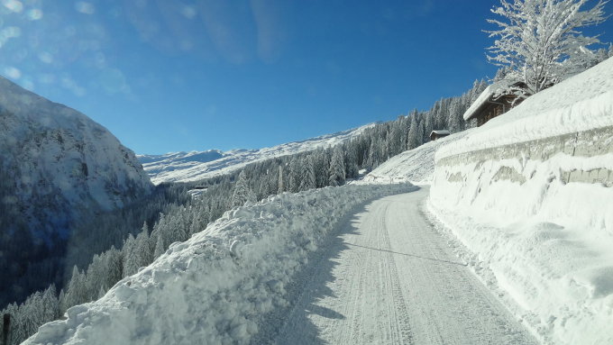 Ab Safien Platz bis Talkirch Turmhaus ist die Strasse weiss geräumt.