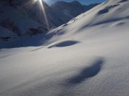 Super Pulver, es hat recht viel Schnee im Safien Tal, am Gipfelhang Steine.