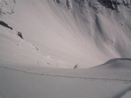 Es hat jetzt eine Spur bis oben. Aufs Landvogthore hats auch schon eine Spur. Trotz Nordexposition hat der Hang offenbar gehalten.