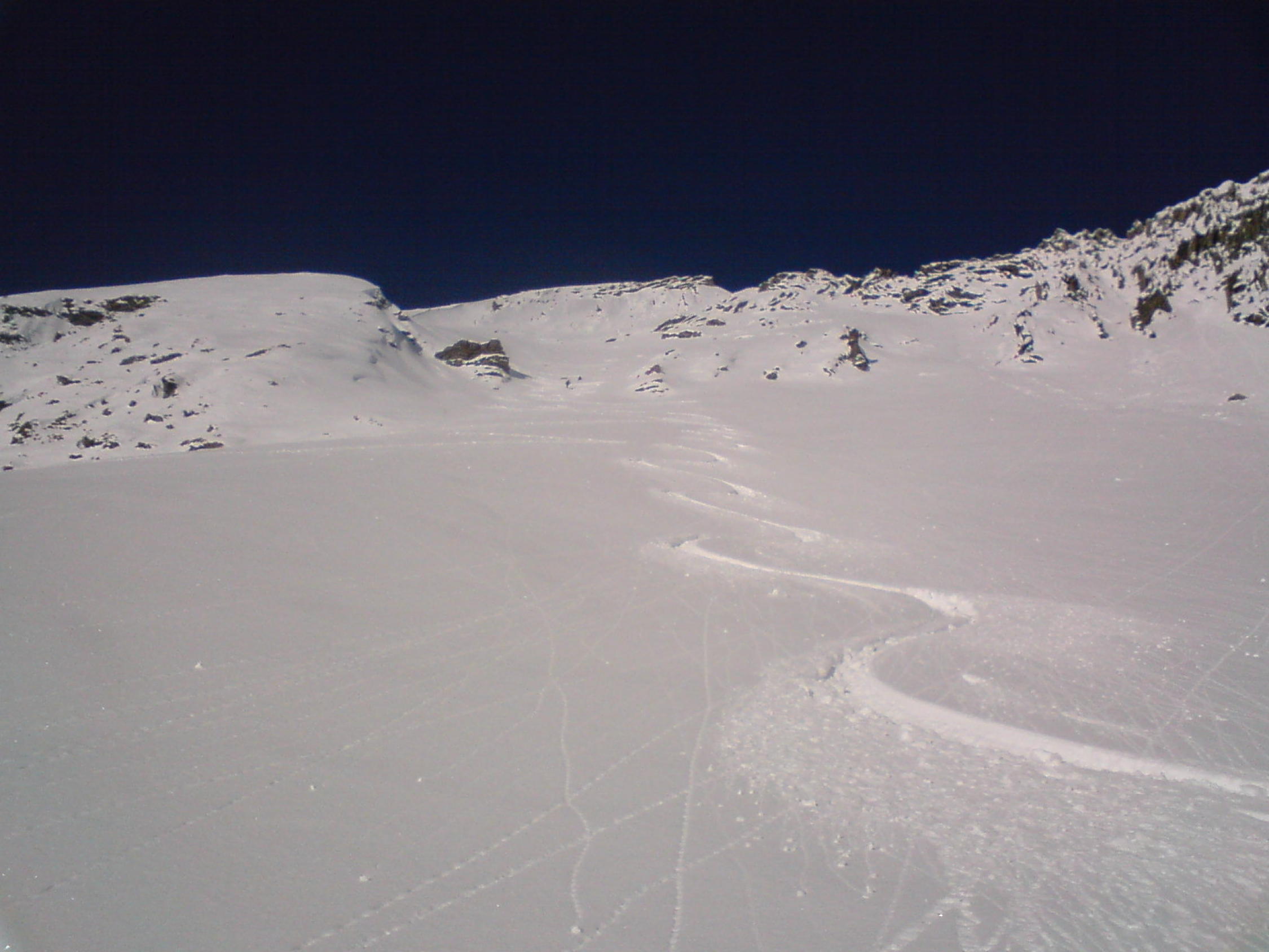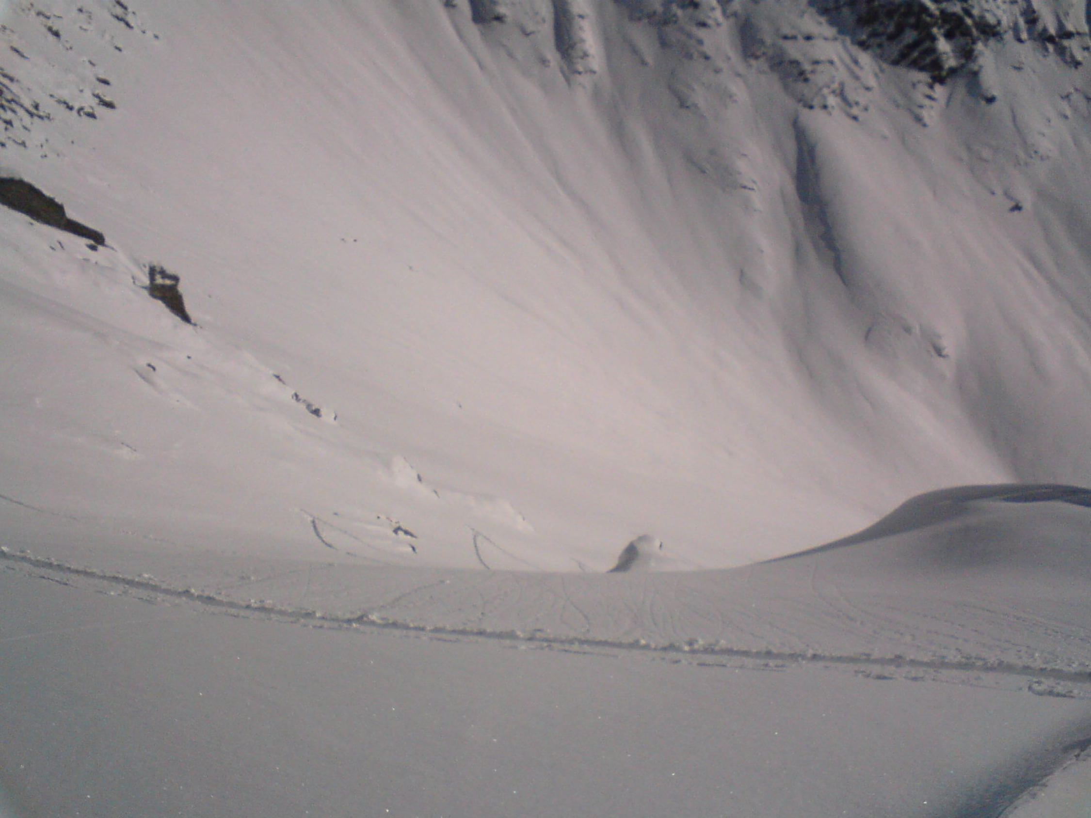 Schnee gut gesetzt. Schon leichter Sonnendeckel. Steinkontakt nicht absolut vermeidbar. Waren für uns. Die Völkerwanderung fand auf der Galmschiebe statt.